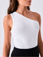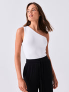 A timeless wardrobe is essential. One Shoulder Rib Tank is made from organic cotton. Designed with a flattering one shoulder, and a subtle ribbed texture. It has the perfect level of stretch. The minimalist silhouette means it looks good however you wear it.