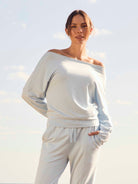 French Terry Off Shoulder Sweatshirt - Cashmere Blue