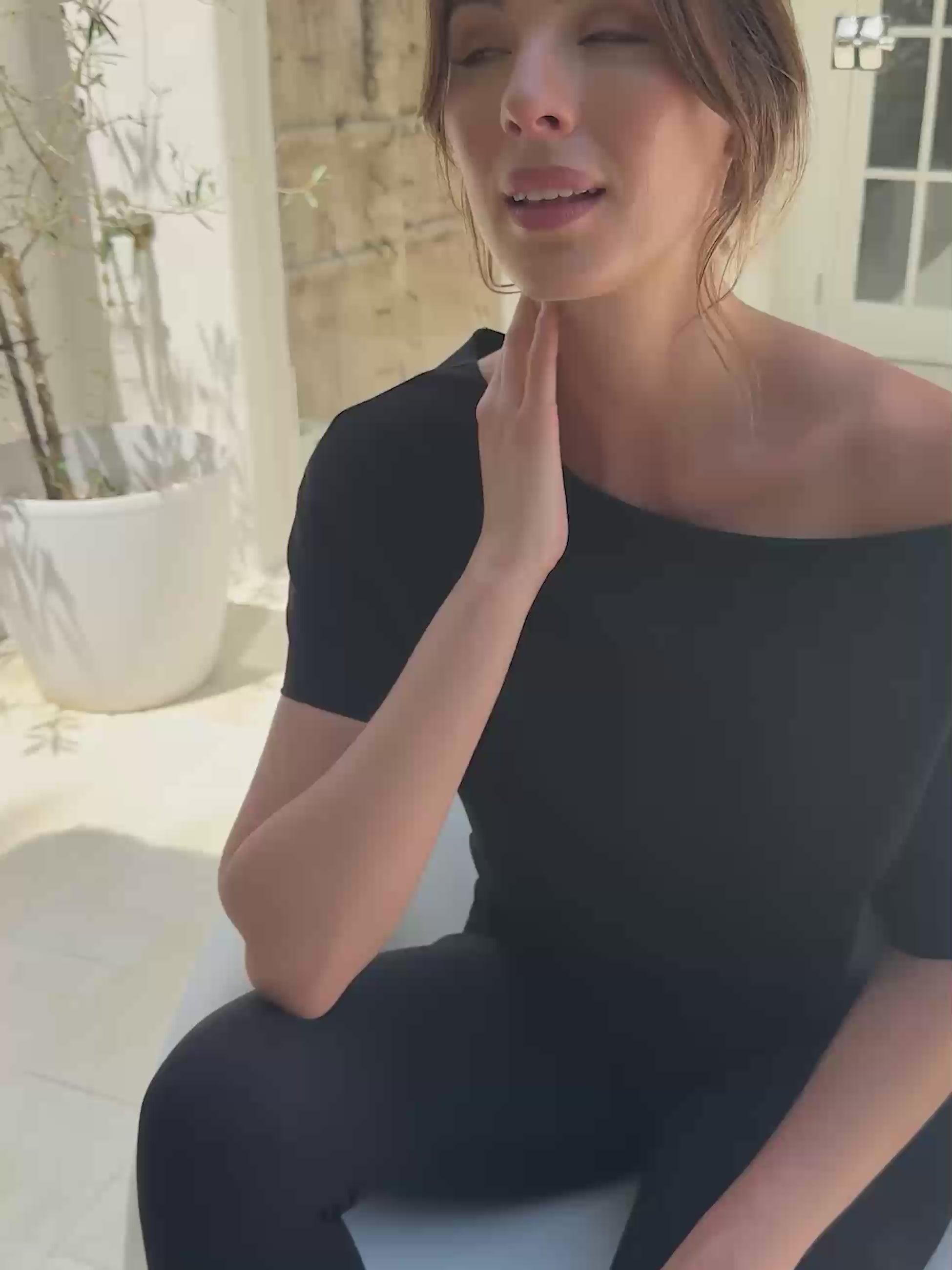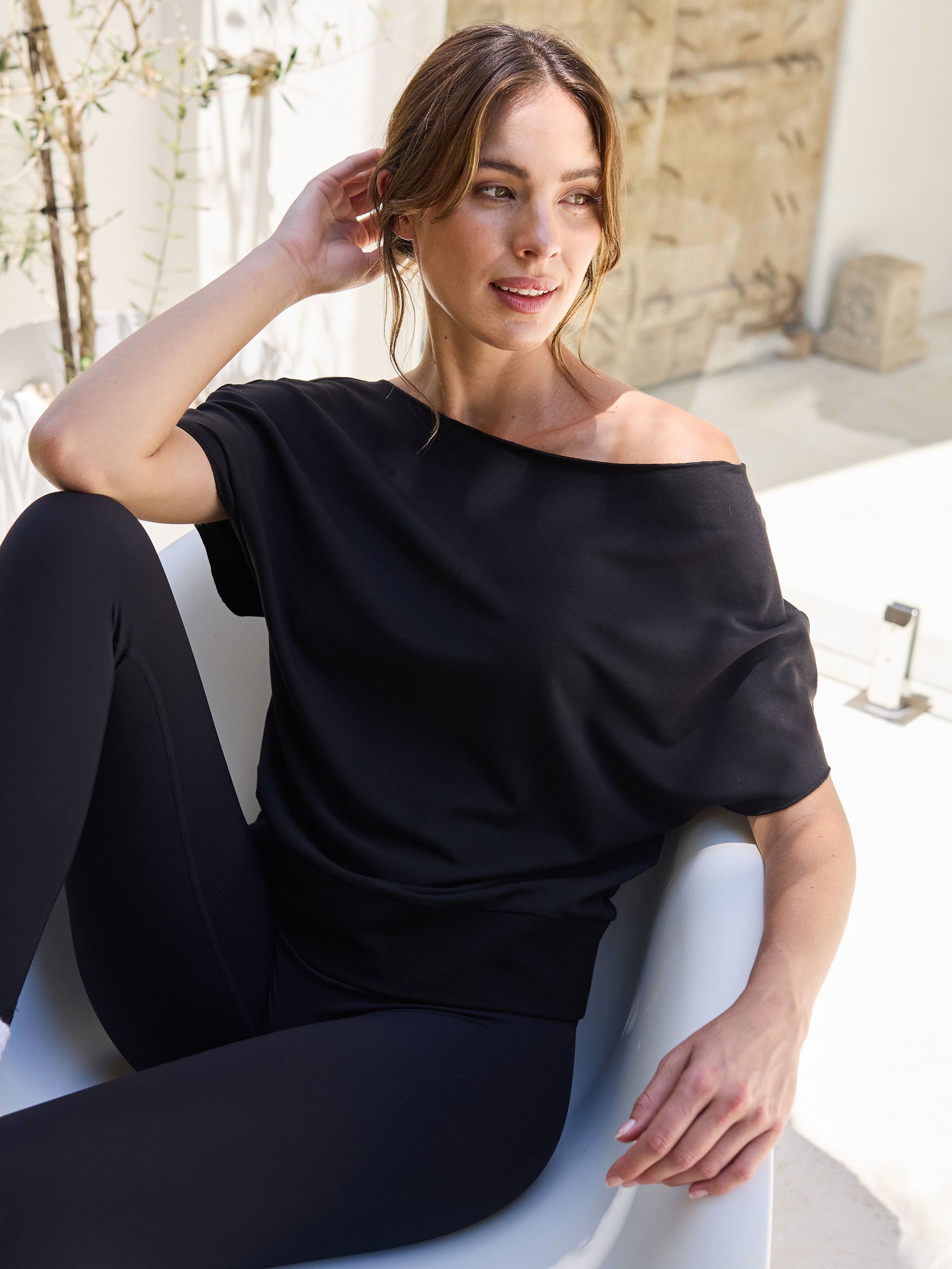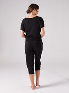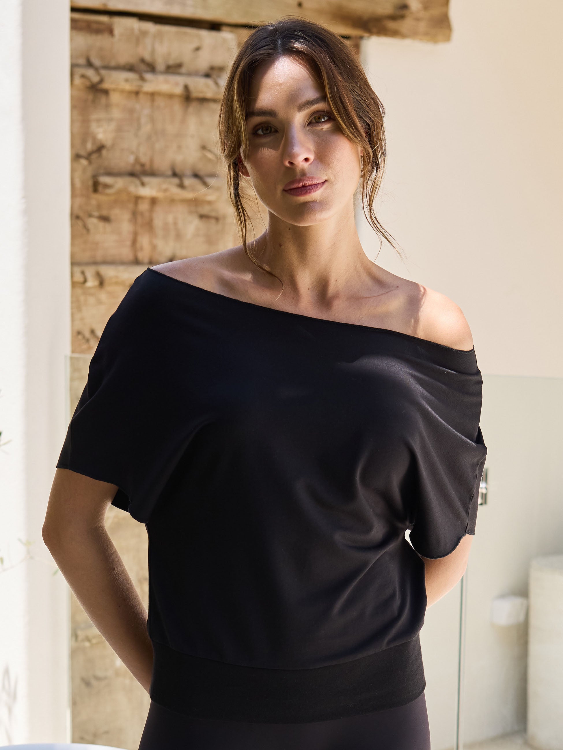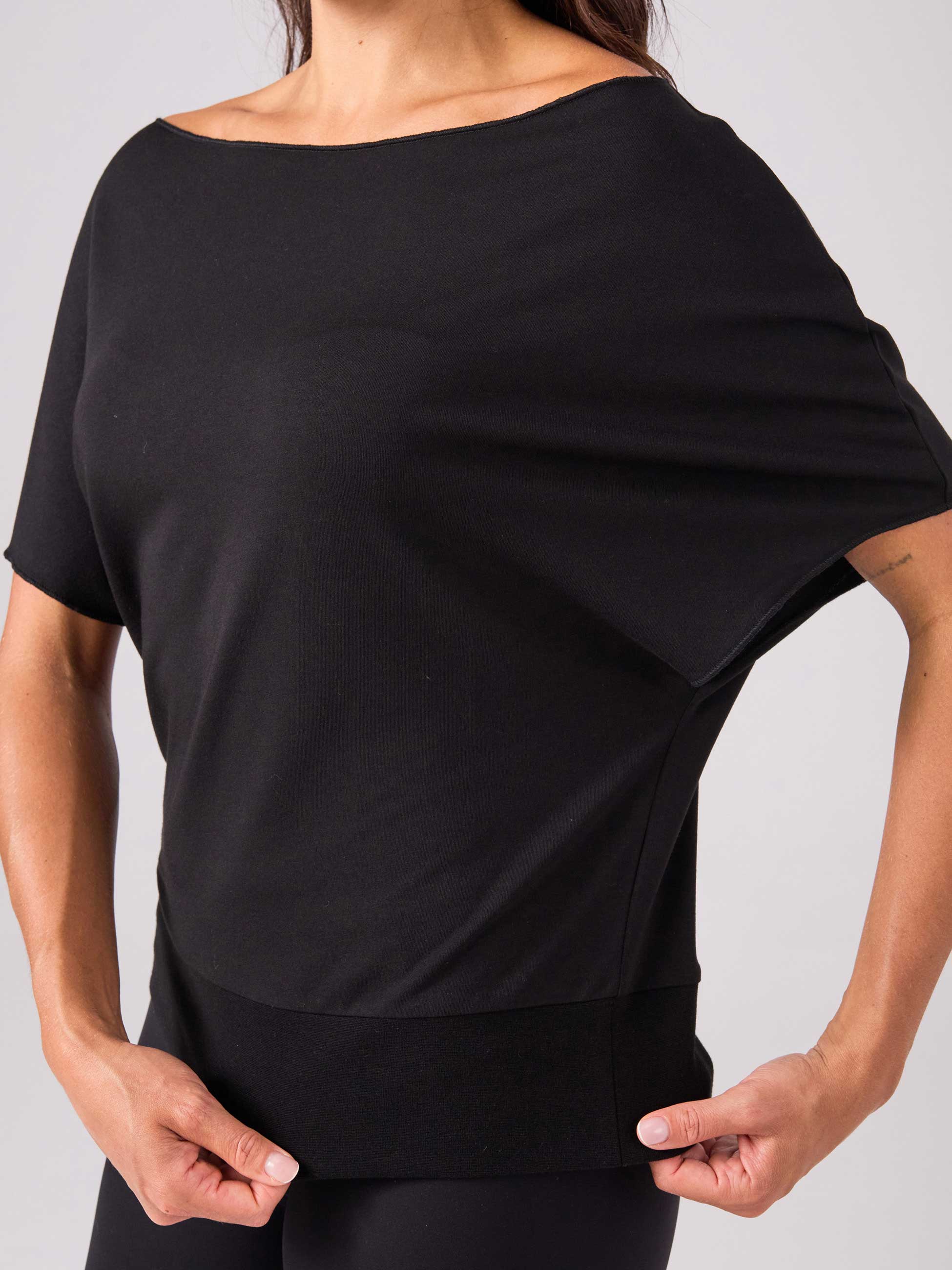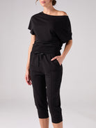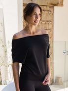 French Terry Short Sleeve Off Shoulder Sweatshirt - Black