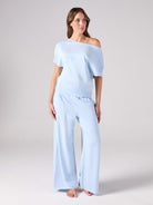 French Terry Short sleeve Off Shoulder Sweatshirt - Cashmere Blue