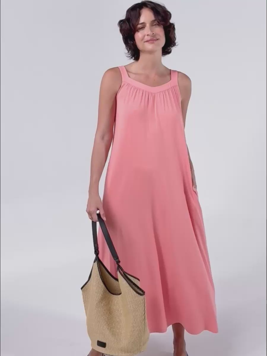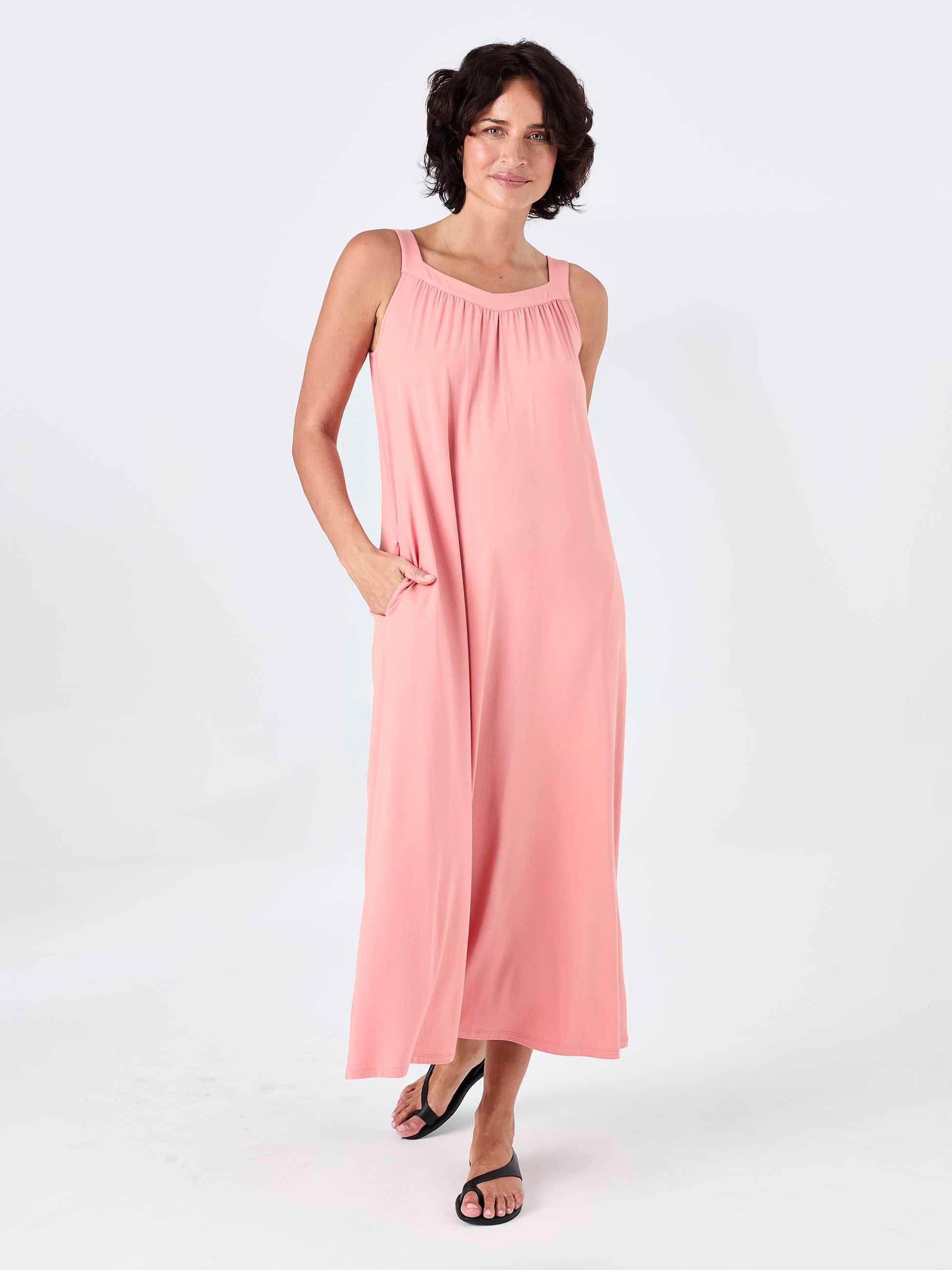 Soft, relaxed and effortlessly feminine, this is the dress you’ll reach for all season long. Designed to move beautifully with you, its floaty silhouette drapes with ease, creating a light, airy feel that’s as comfortable as it is flattering.The softly gathered neckline adds gentle texture and shape, elevating the simplicity of the design while keeping it relaxed and wearable.Perfect for beach days layered over swim, long lunches in the sun, or styled with sandals and statement earrings for easy evening vibes — this is versatility at its most effortless.