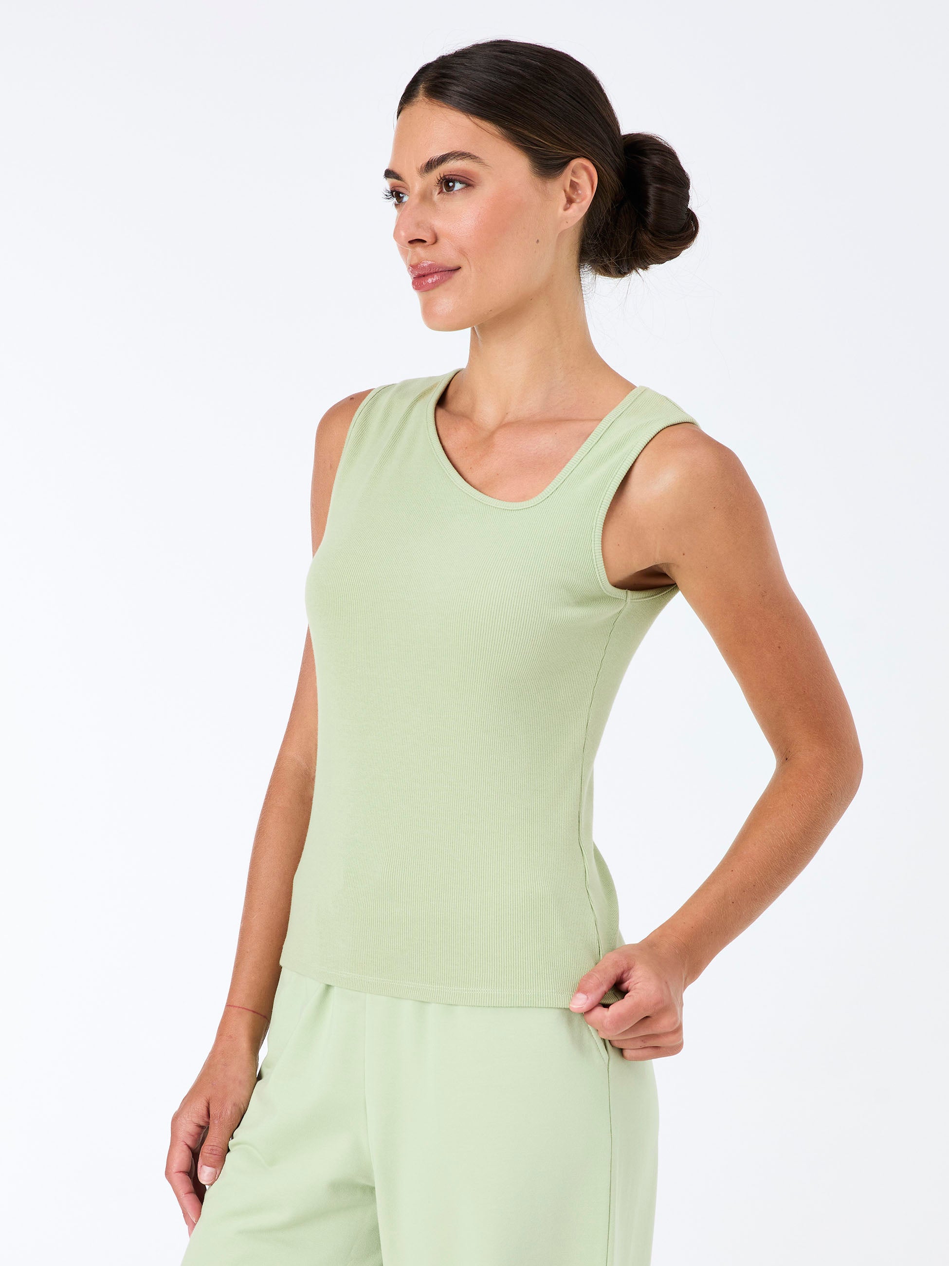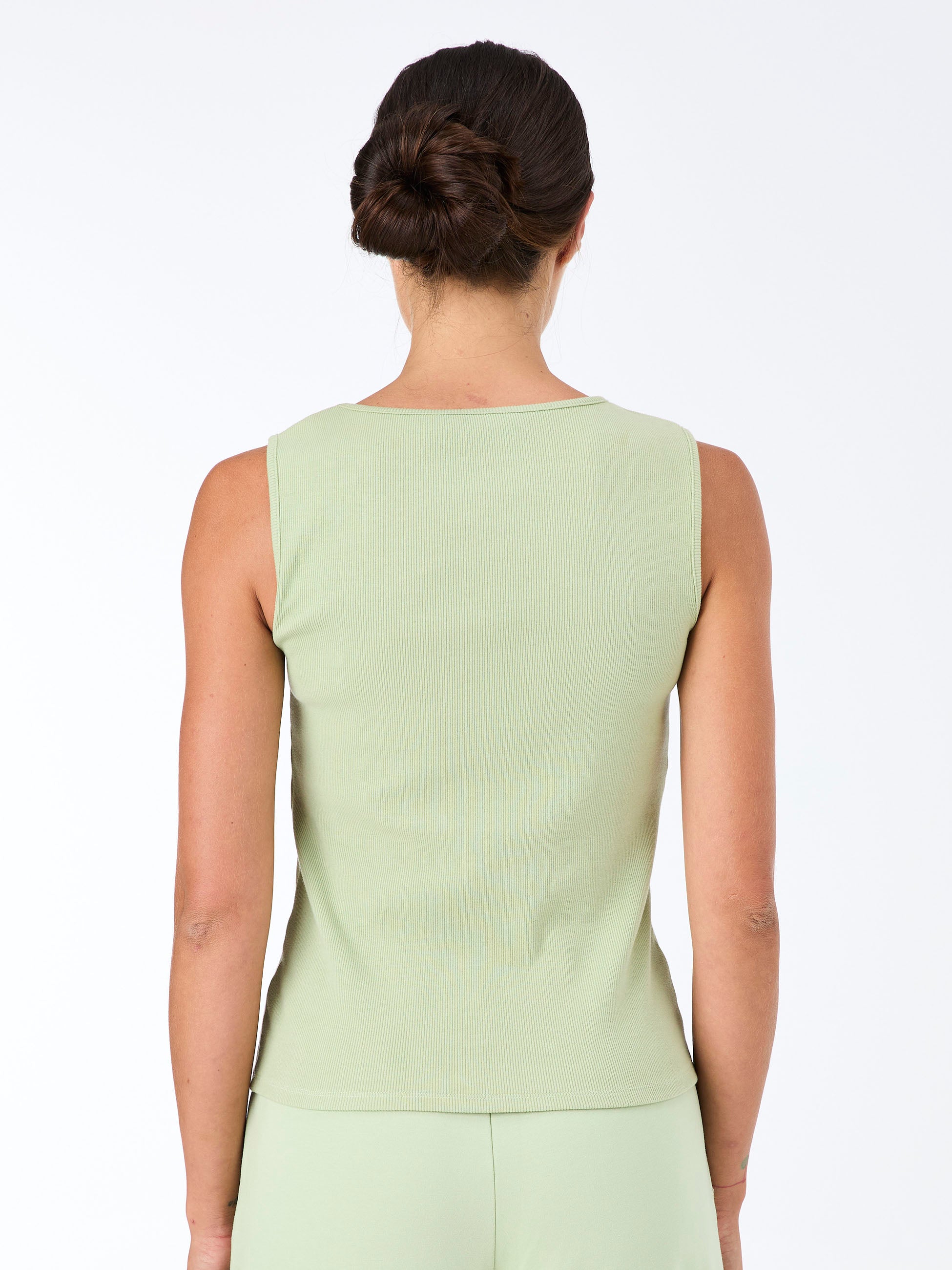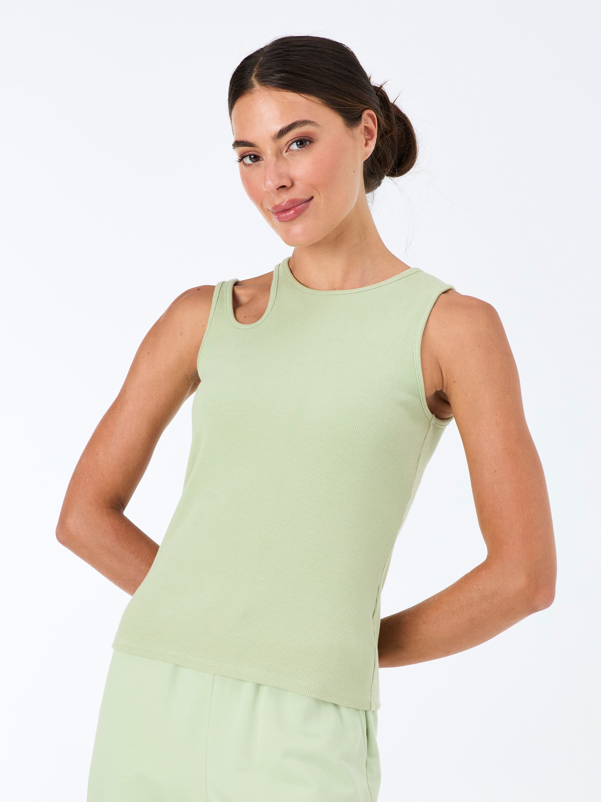 So excited about this singlet I have been looking for this neckline cut in a rib for a while now and found this. the cut the fabric and length of this singlet are just perfect love it so much I ordered a few colours !!