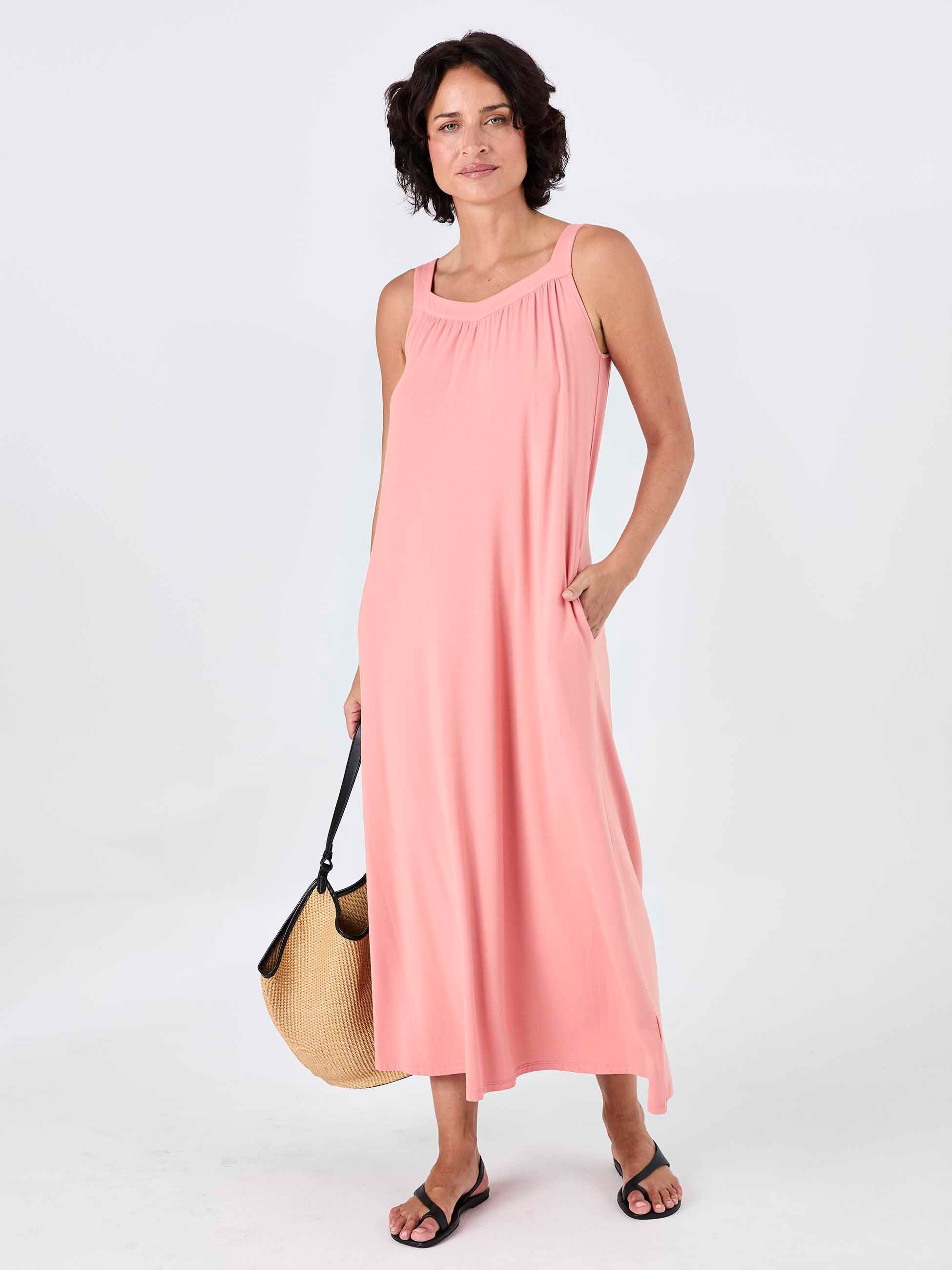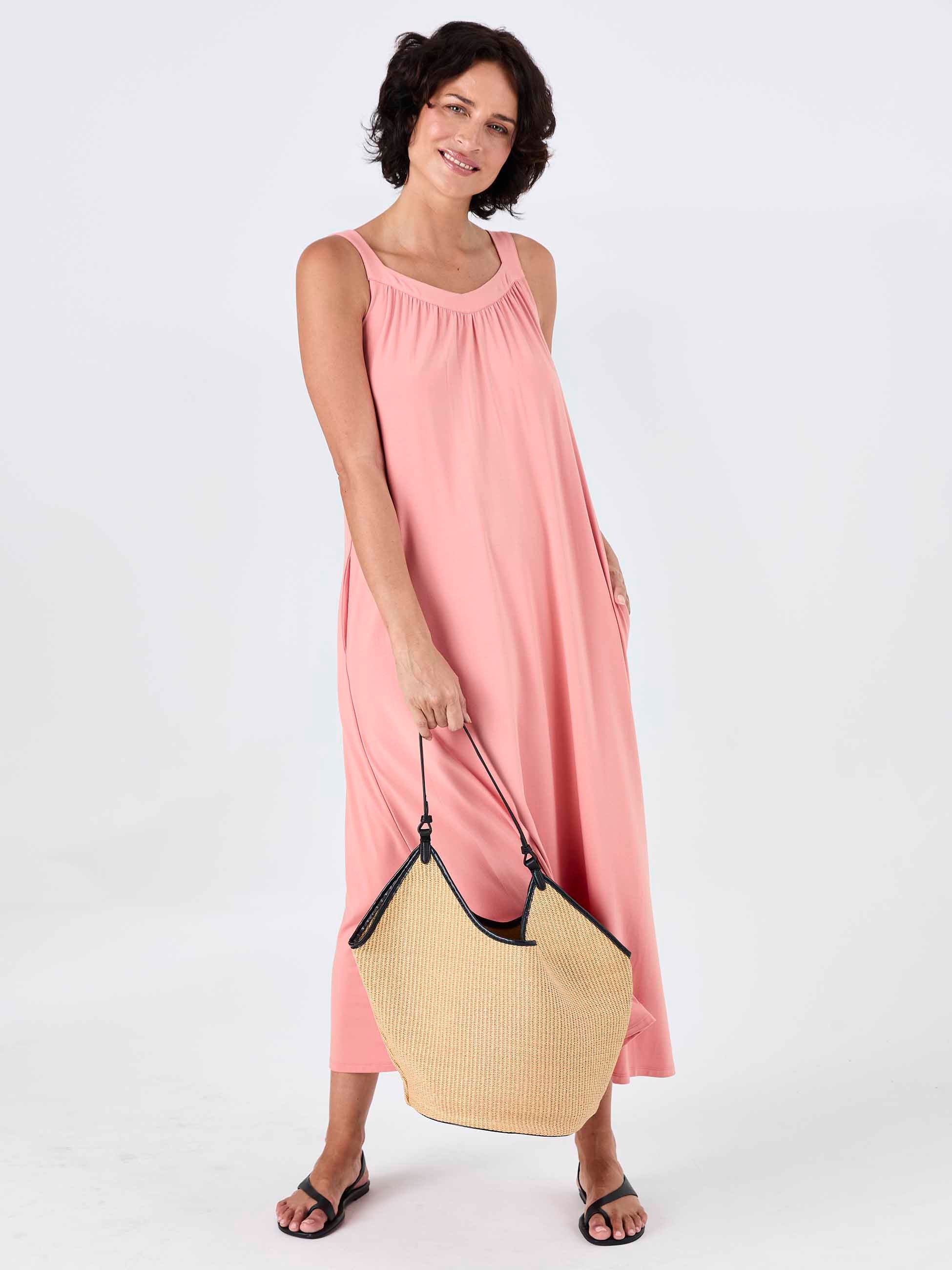I first purchased this dress in black and loved it so much I then purchased the navy. This is the ultimate comfortable and elegant allrounder. You can dress it up or down. The deep pockets are so handy and secure, fitting mobile phone and car keys in them without even being able to see them. I feel I will be adding more colours to my collection soon! My absolute 'go to' dress.