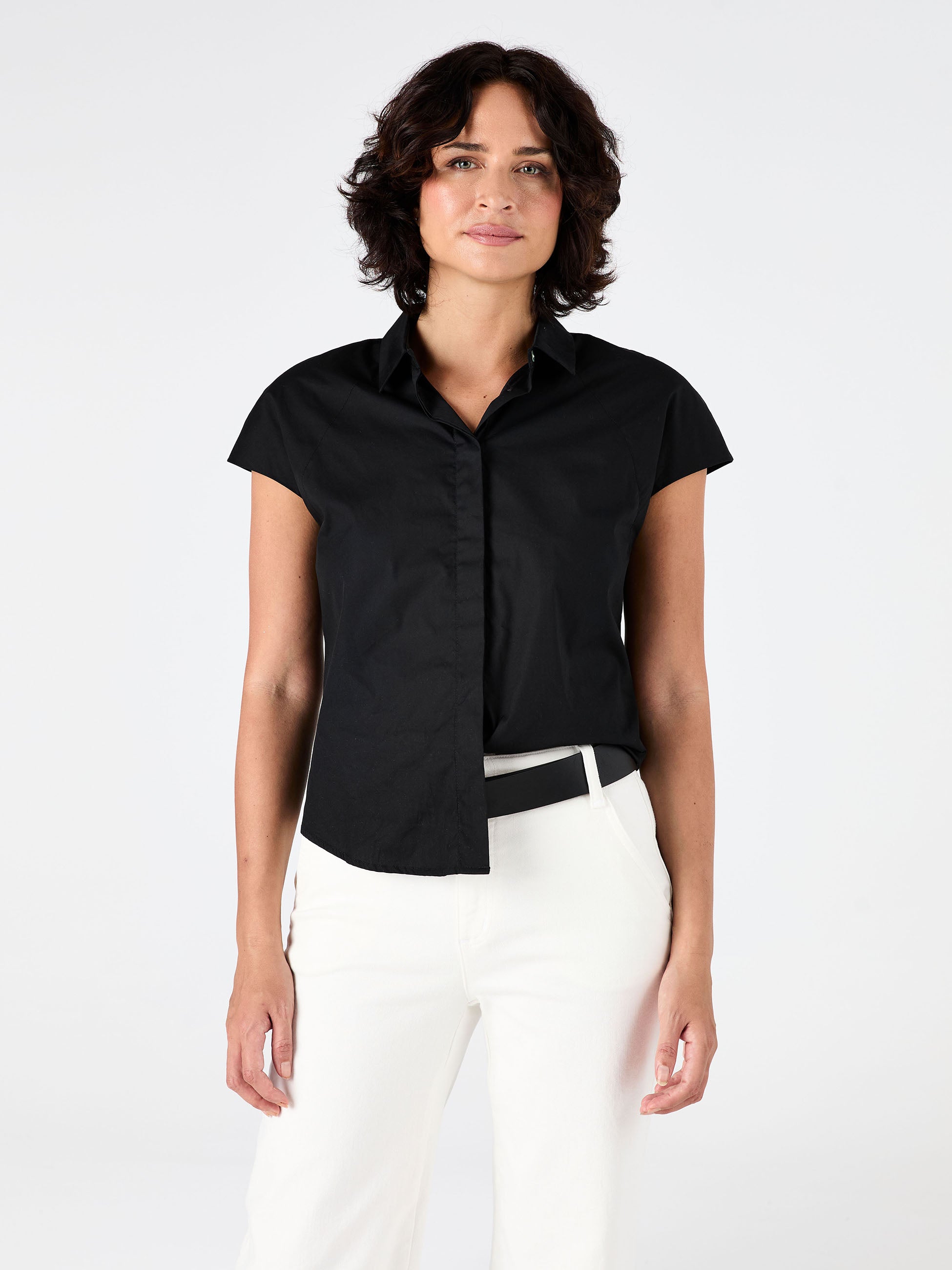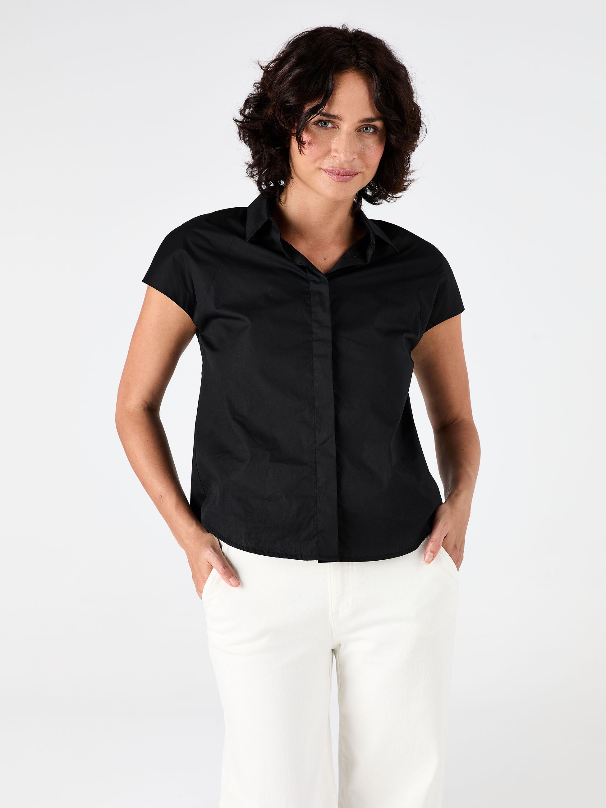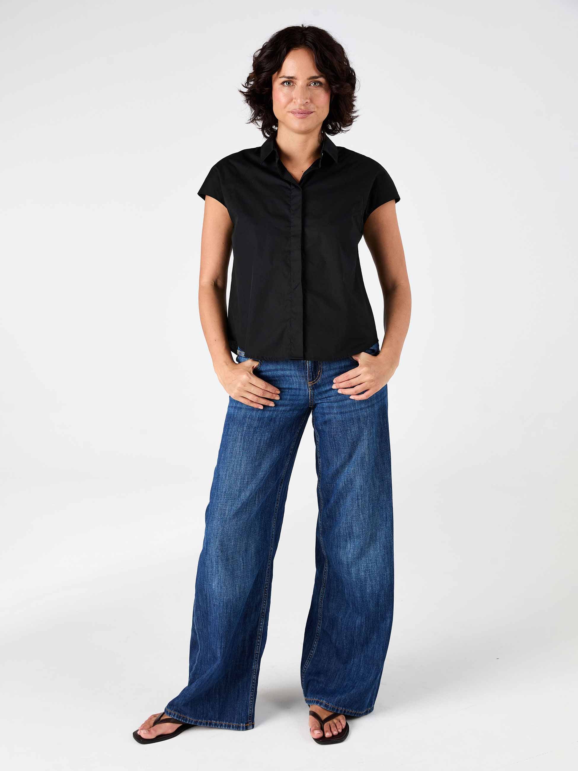 The Laurel Poplin Shirt is the kind of piece you reach for without thinking. Crisp, clean, and cut in a relaxed fit that feels easy from the moment you put it on. The high neck collar and button-through front give it a polished edge, while the adjustable detailing means you can wear it exactly how you like.
