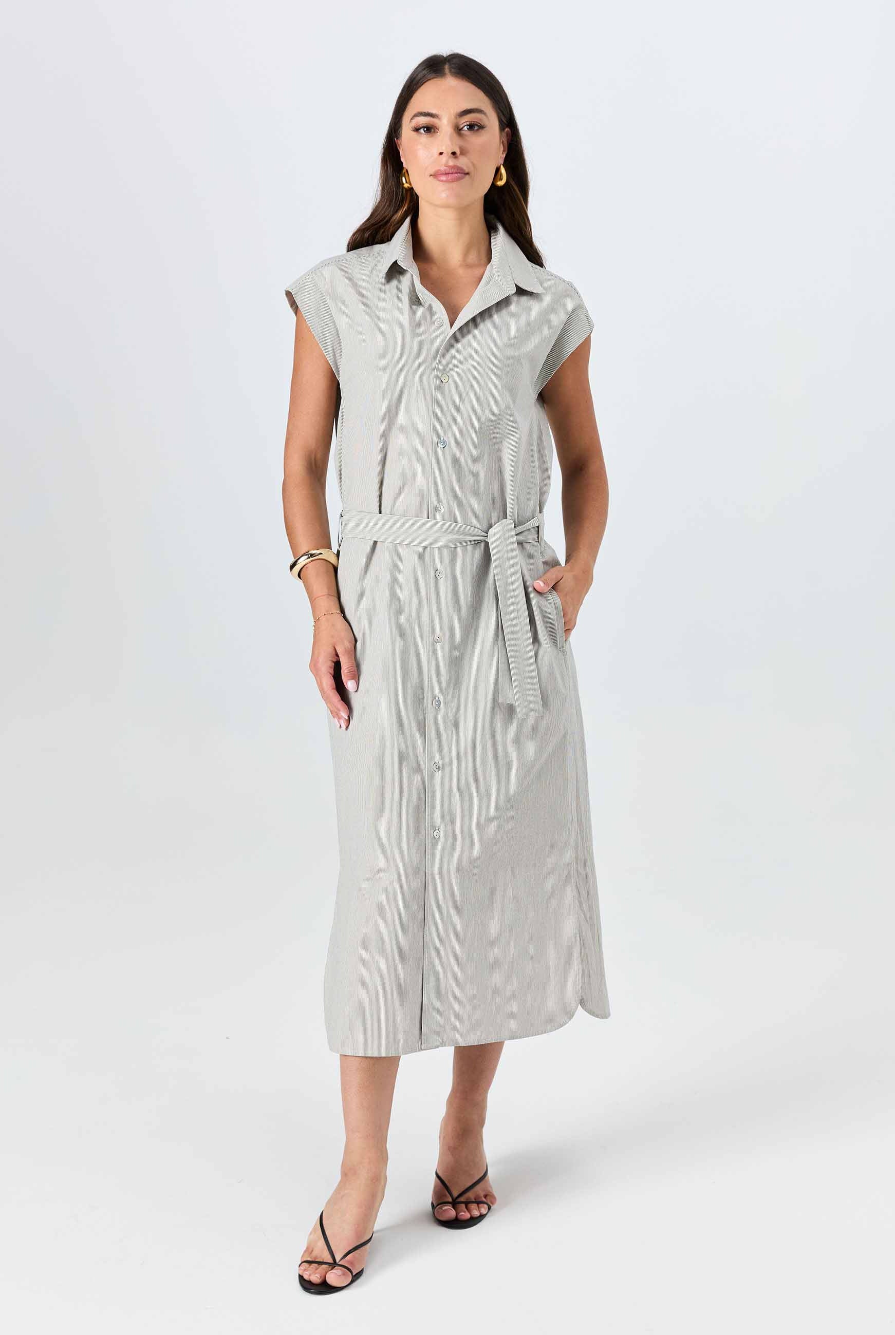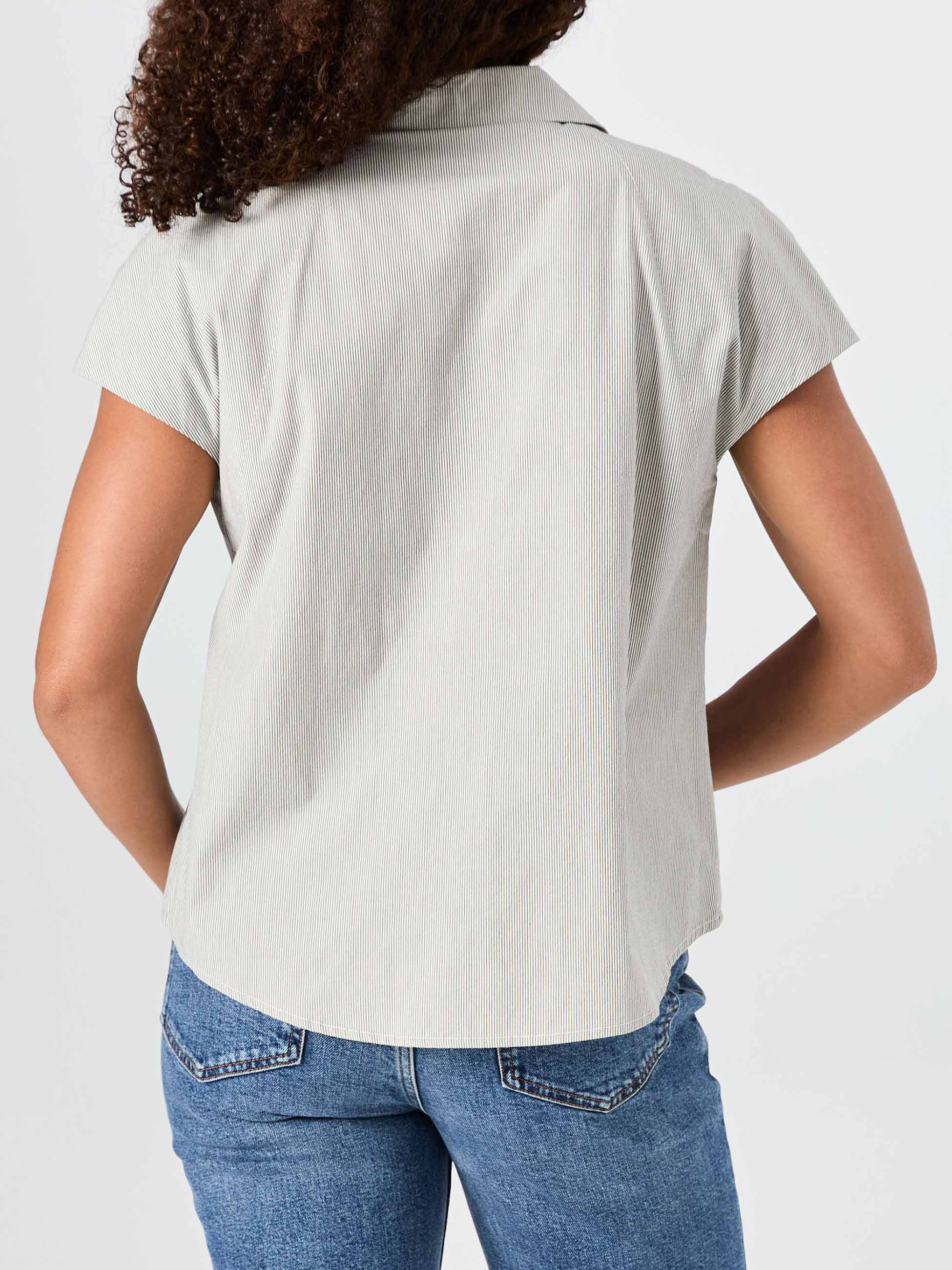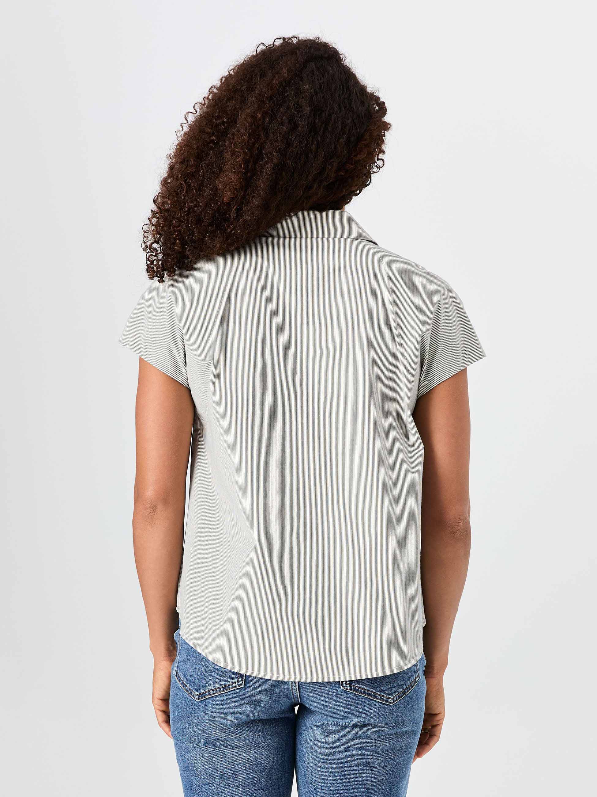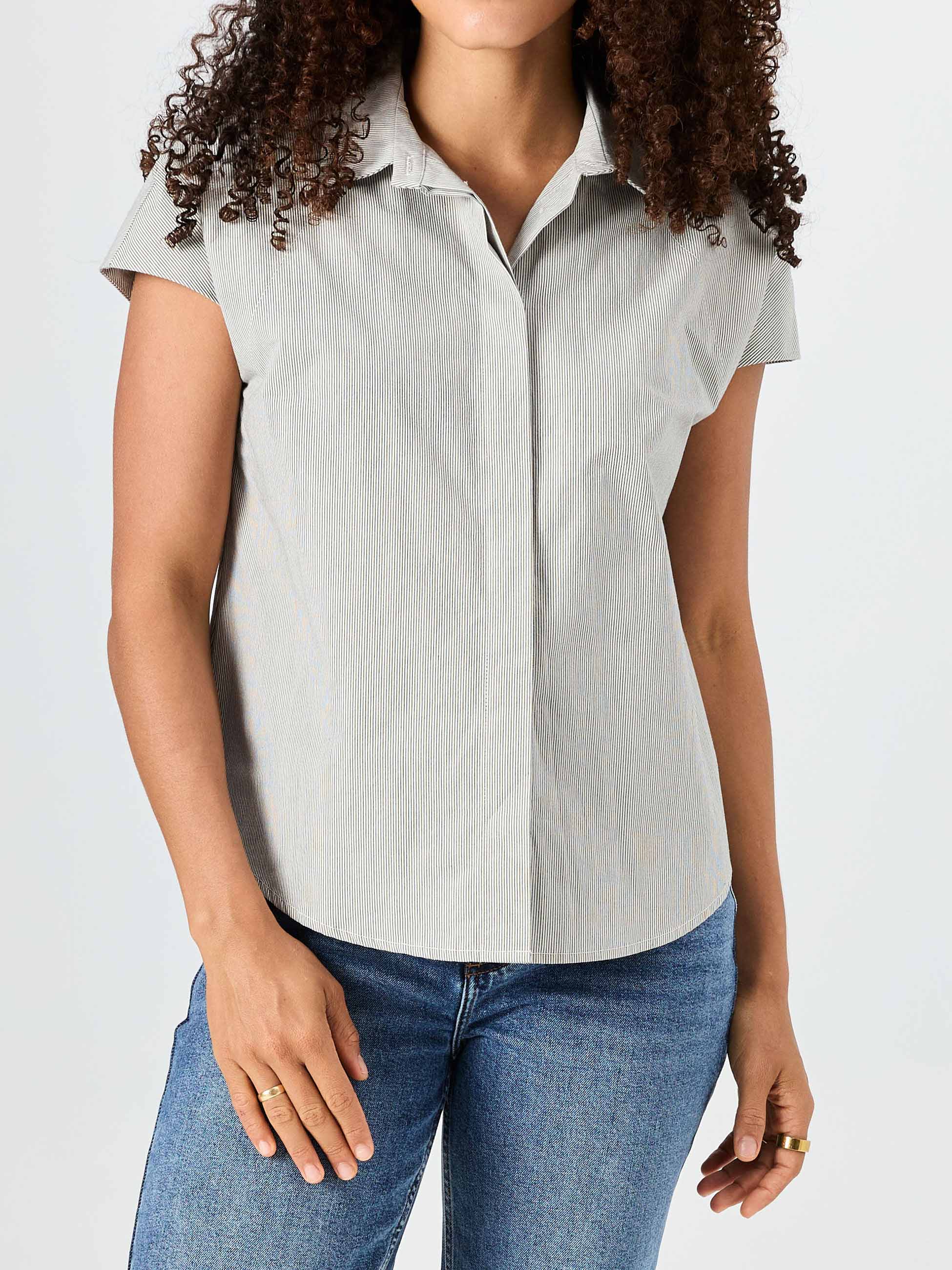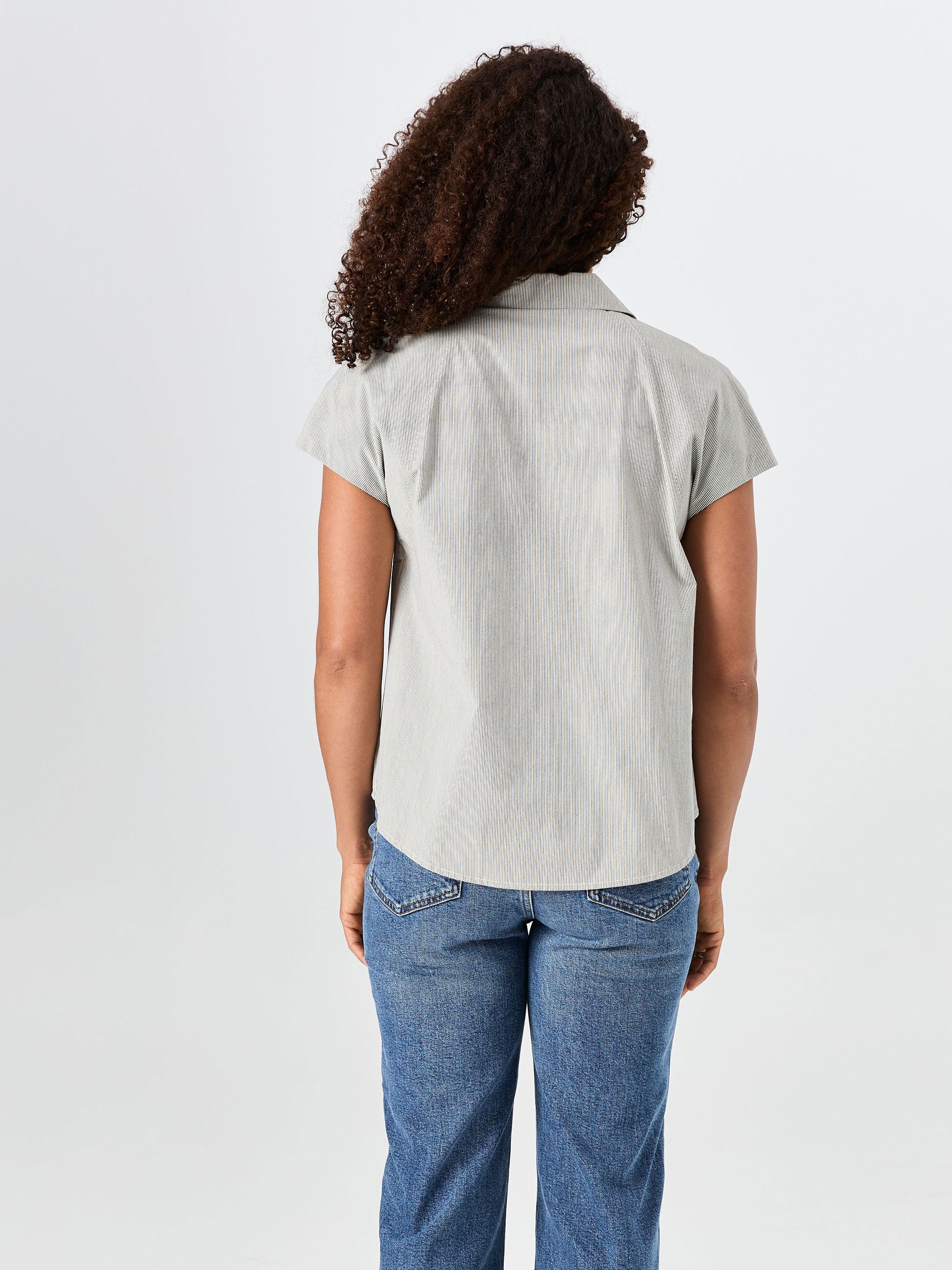 The Laurel Poplin Shirt is the kind of piece you reach for without thinking. Crisp, clean, and cut in a relaxed fit that feels easy from the moment you put it on. The high neck collar and button-through front give it a polished edge, while the adjustable detailing means you can wear it exactly how you like.