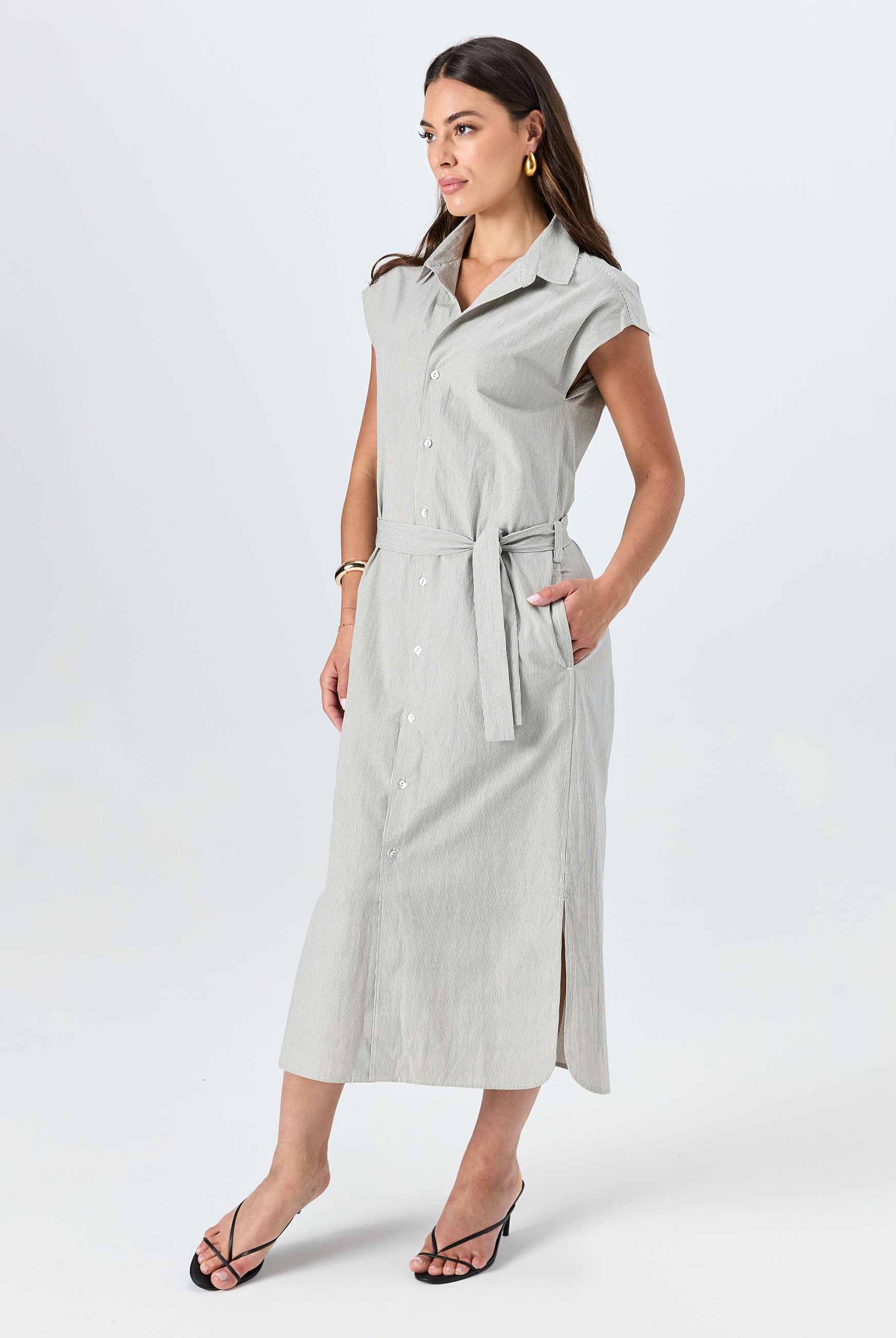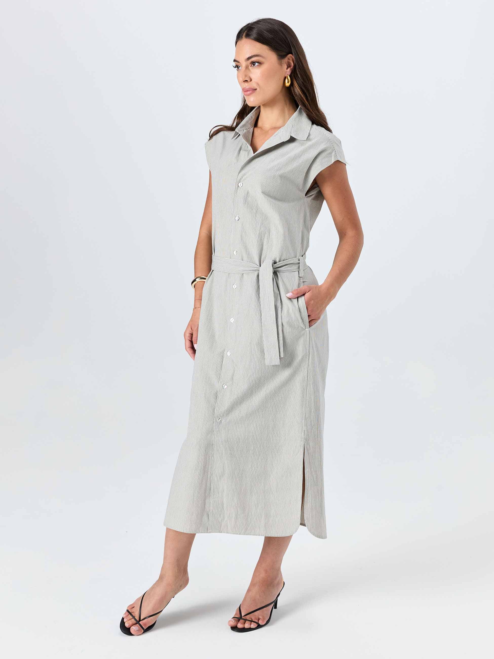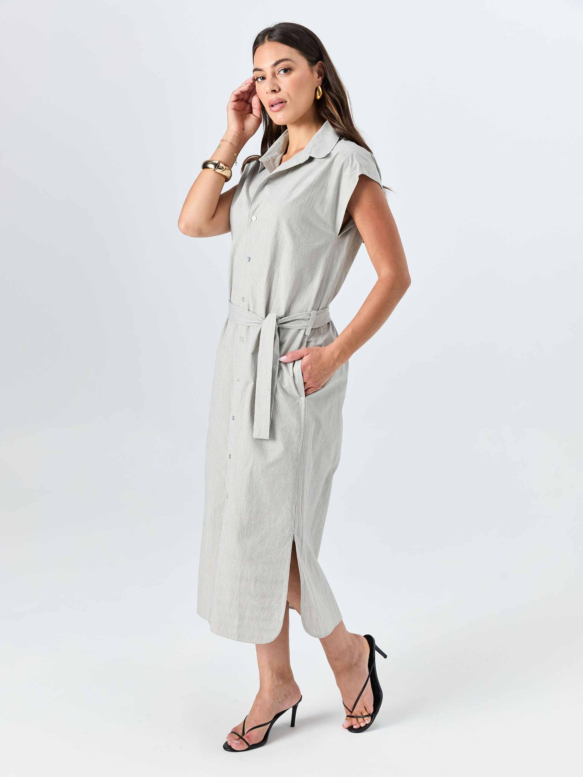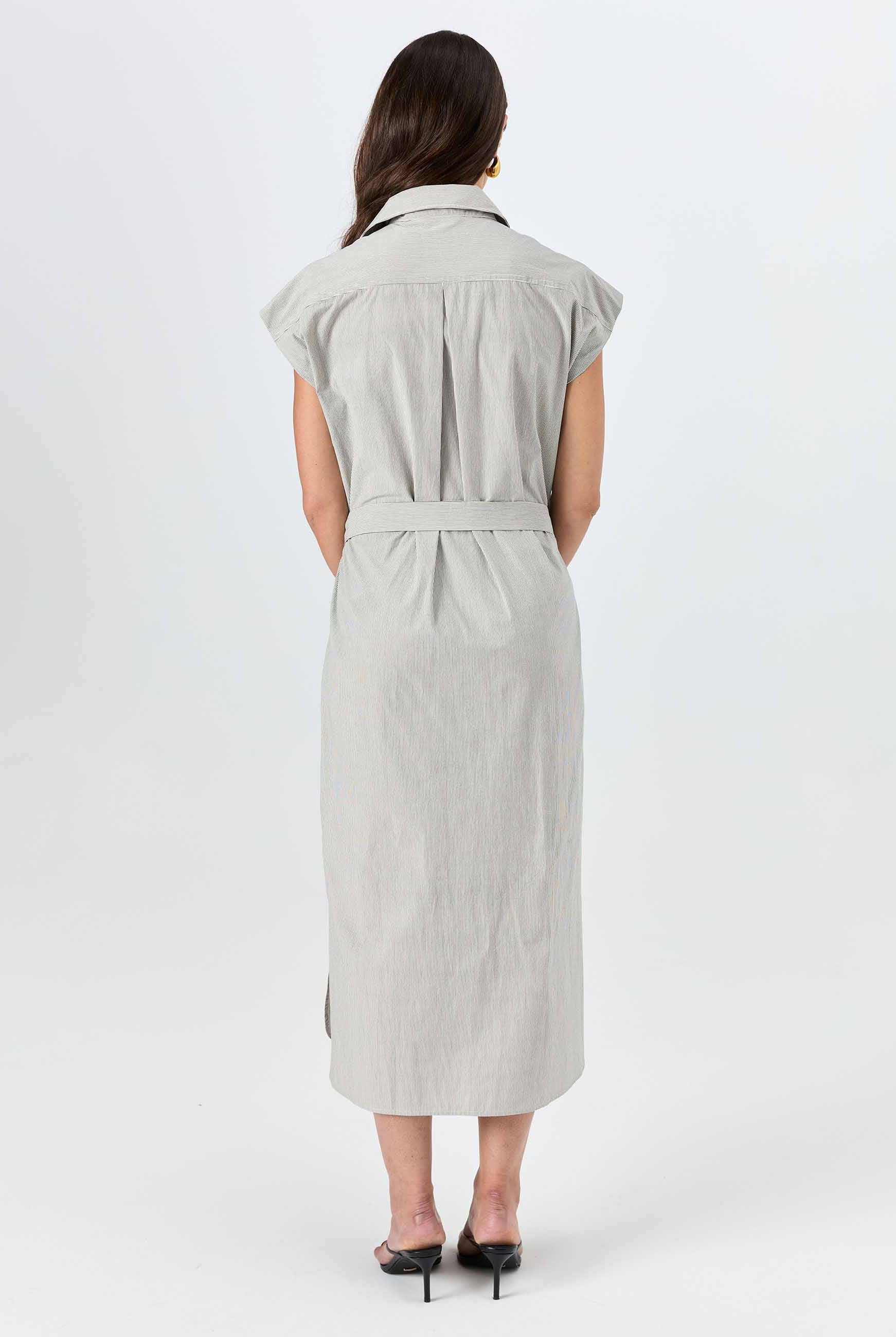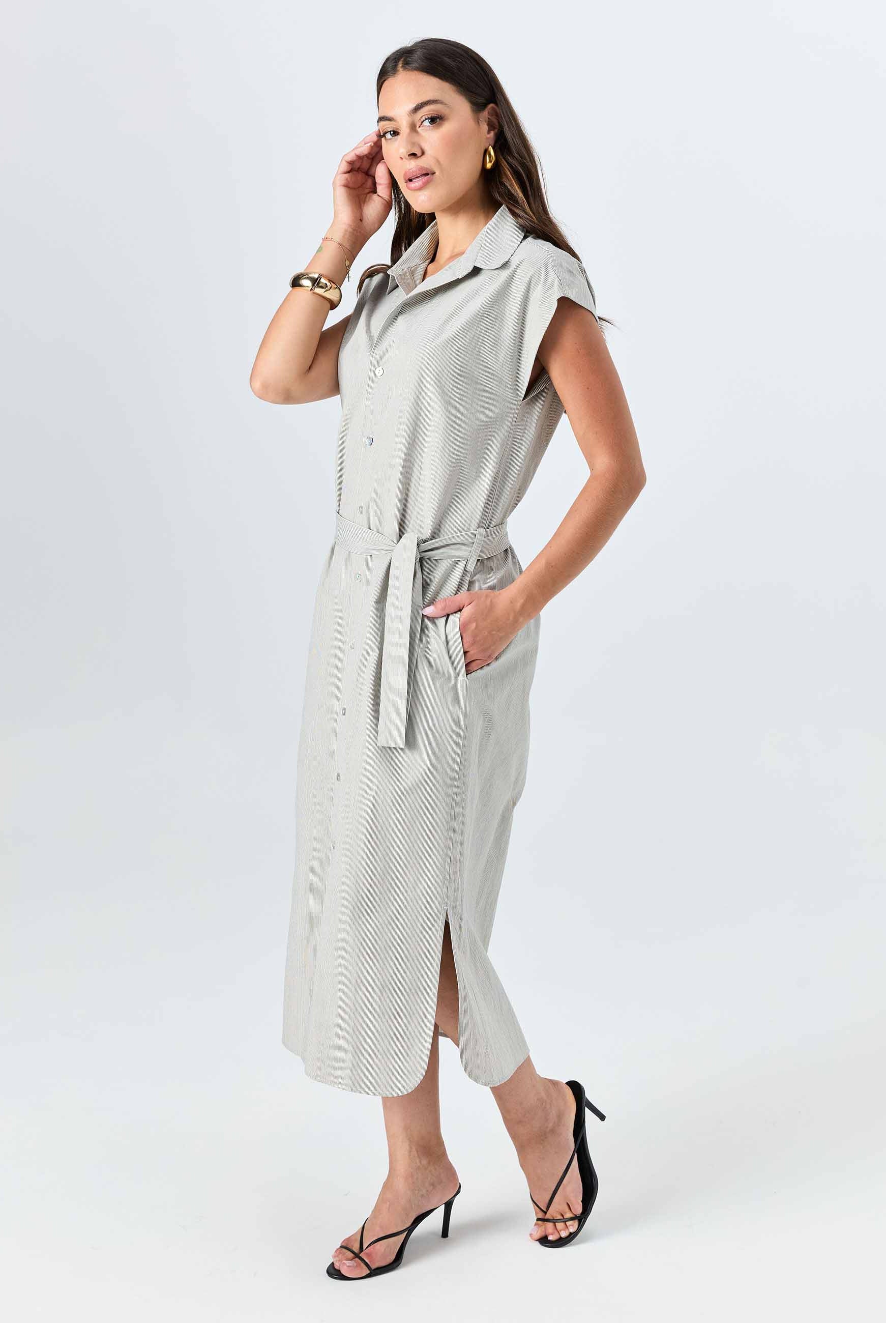 The Laurel Poplin Shirt is the kind of piece you reach for without thinking. Crisp, clean, and cut in a relaxed fit that feels easy from the moment you put it on. The high neck collar and button-through front give it a polished edge, while the adjustable detailing means you can wear it exactly how you like.