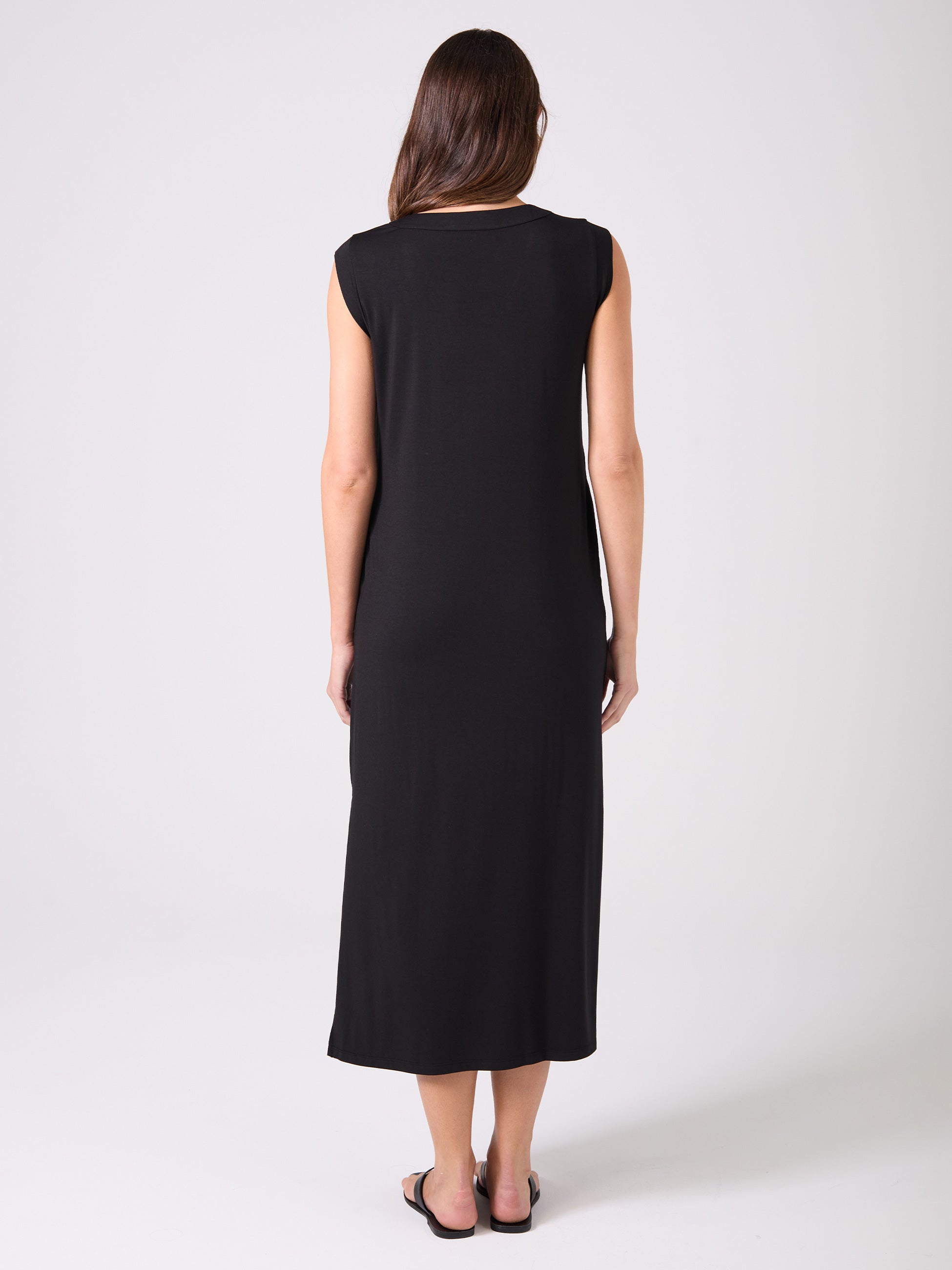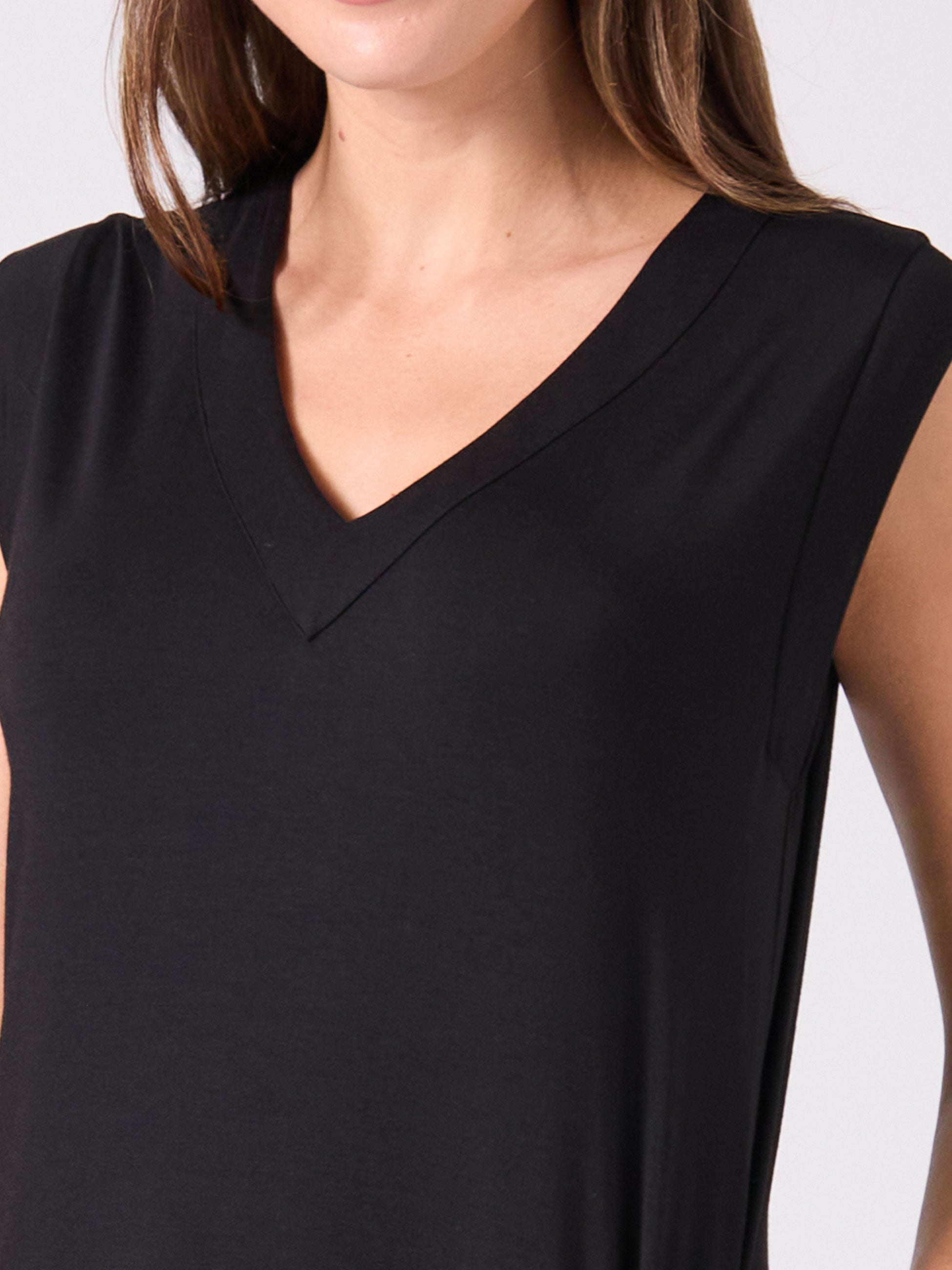 Love this elegant black tee which can be worn either casually or with pants for elegant evening wear.
