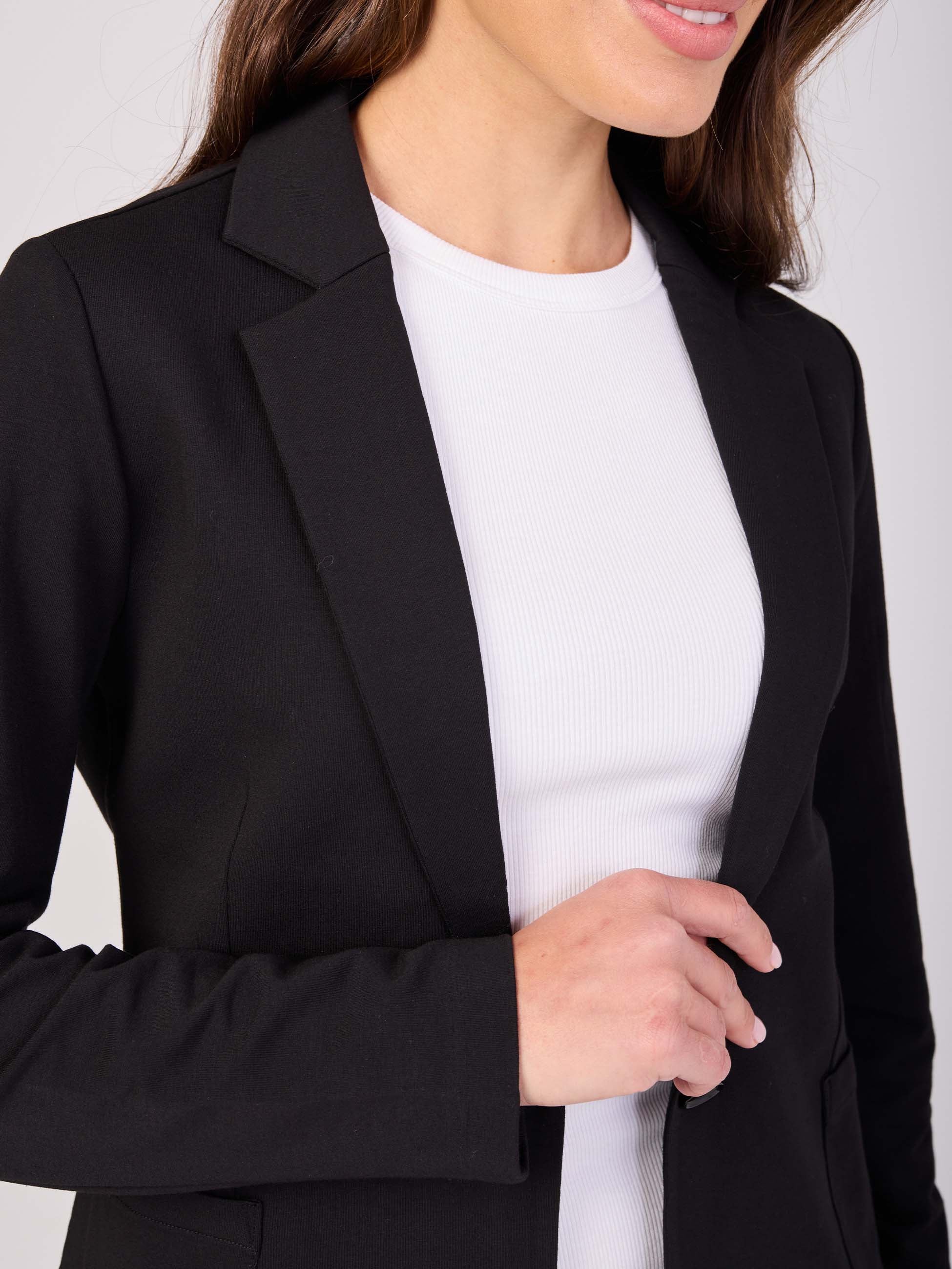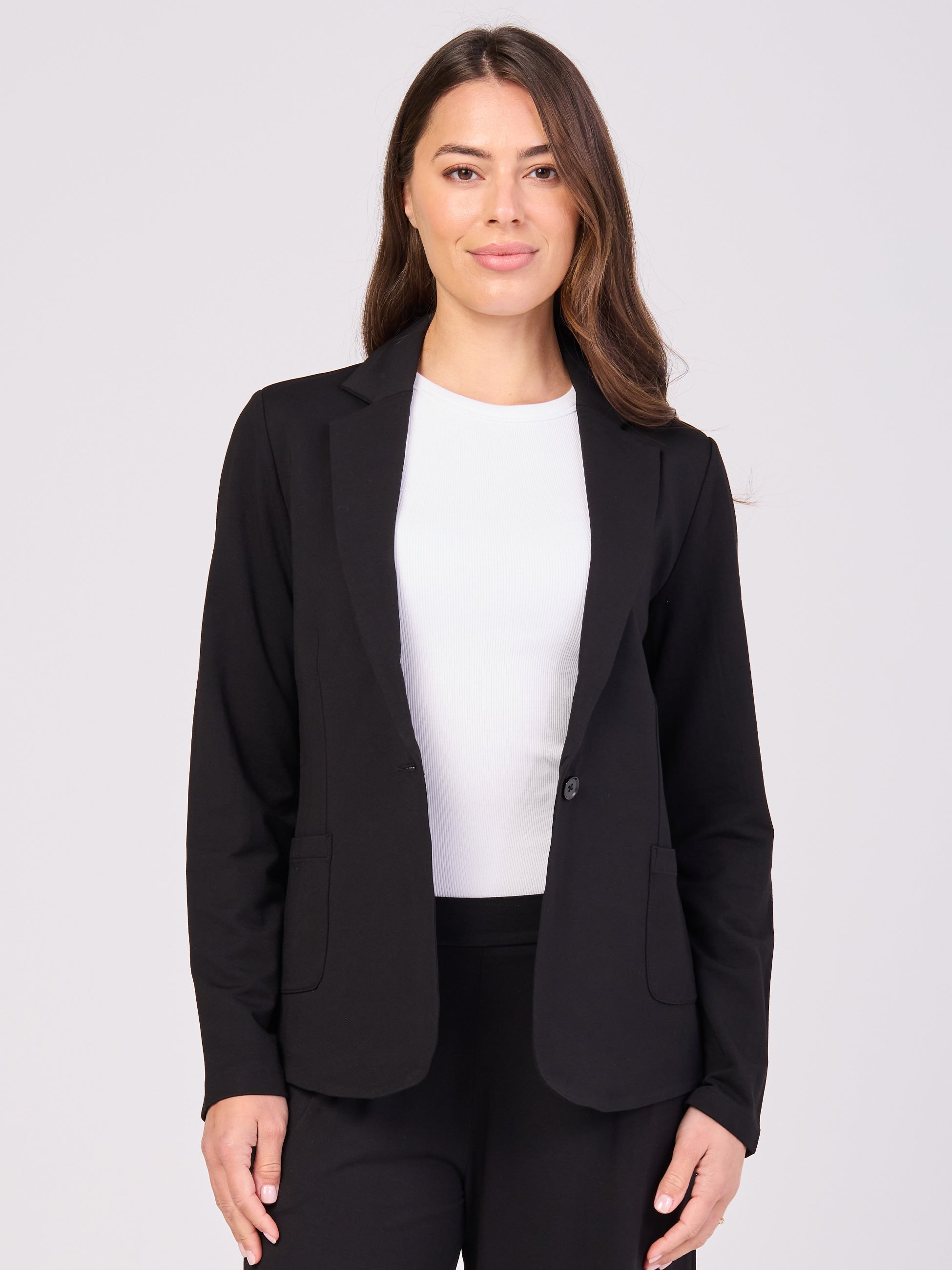 Absolutely love this jacket! So comfortable yet it is classy. Fabric is a nice weight so it holds shape nicely. Great for travel. My only regret is I didn’t get it in black before it sold out in my size