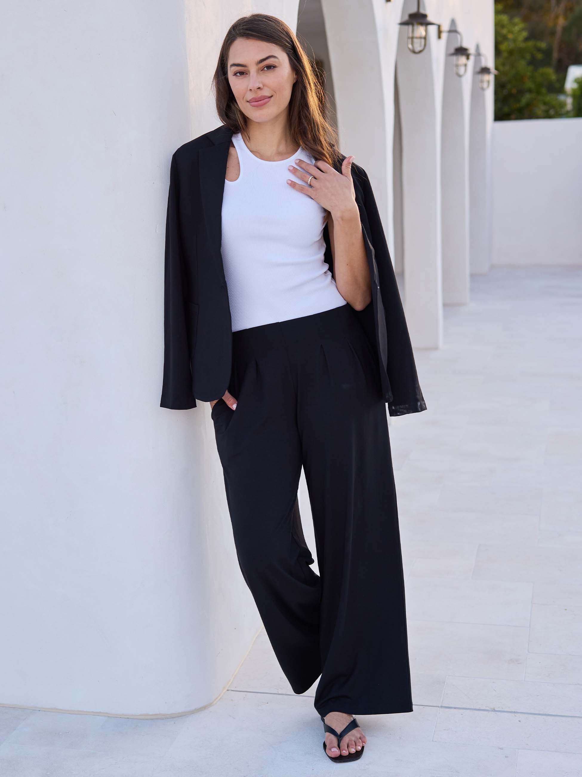 I don’t normally write reviews but this clothing has become my favourite ‘go to’ for comfort and leisure. I had purchased the wide leg pants in navy and the white Athena top and loved them so much for their softness, comfort and drape that I bought the navy Athena top. I now have a smart set that I can wear for travel, brunch, shopping and light exercise. Highly recommend DharmaBums.
