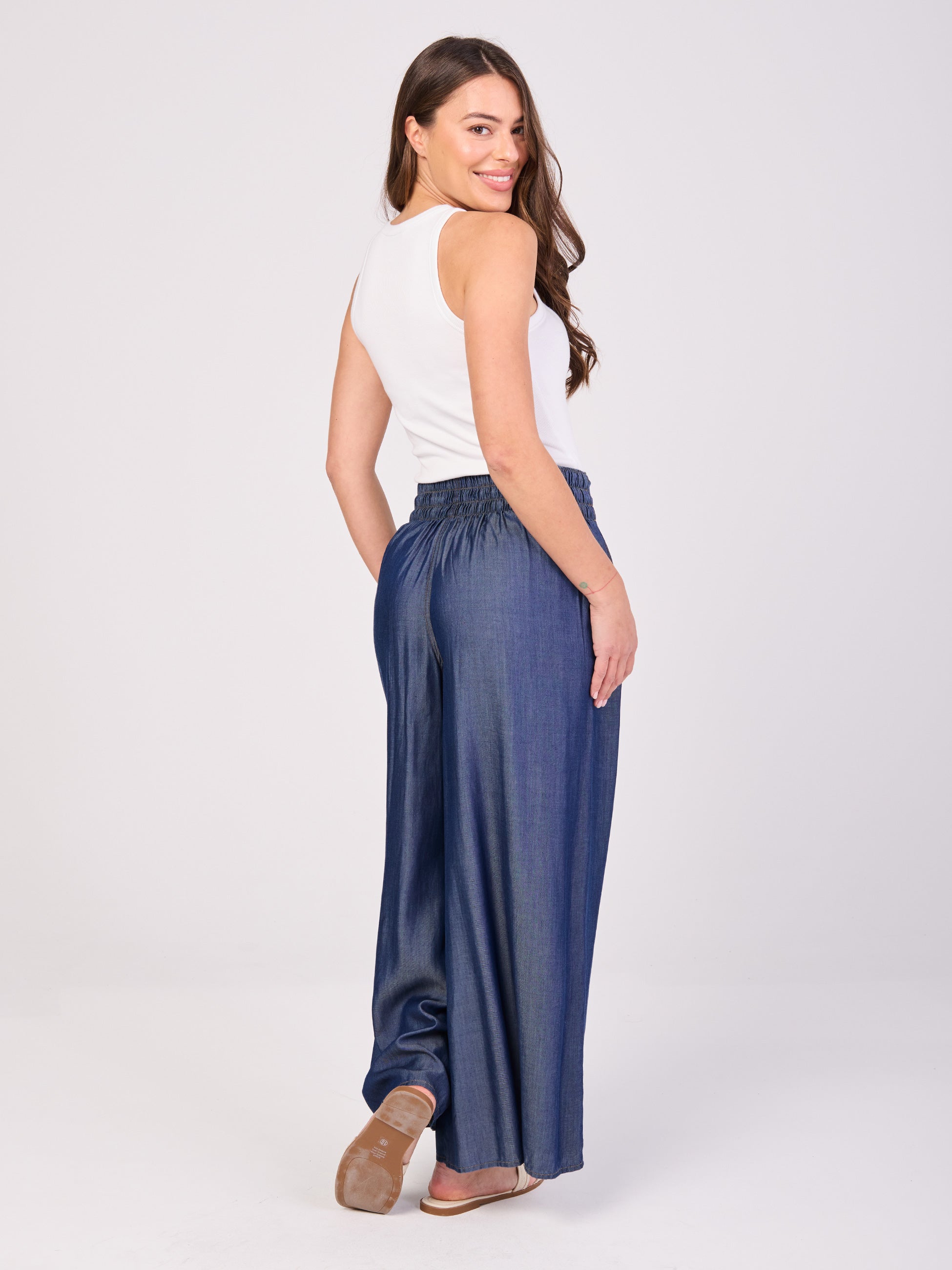 • Building a mix-and-match outfit with wide-leg pants and simple tops