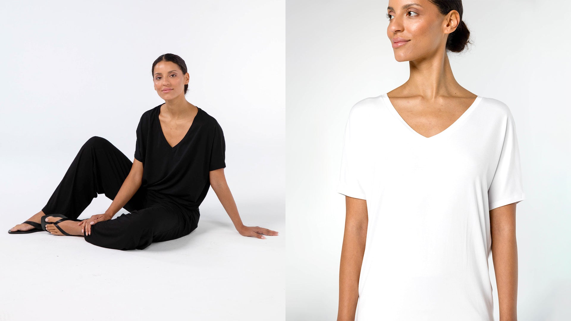 A gentle V neckline adds effortless elegance, while the relaxed drape keeps the silhouette clean and modern.