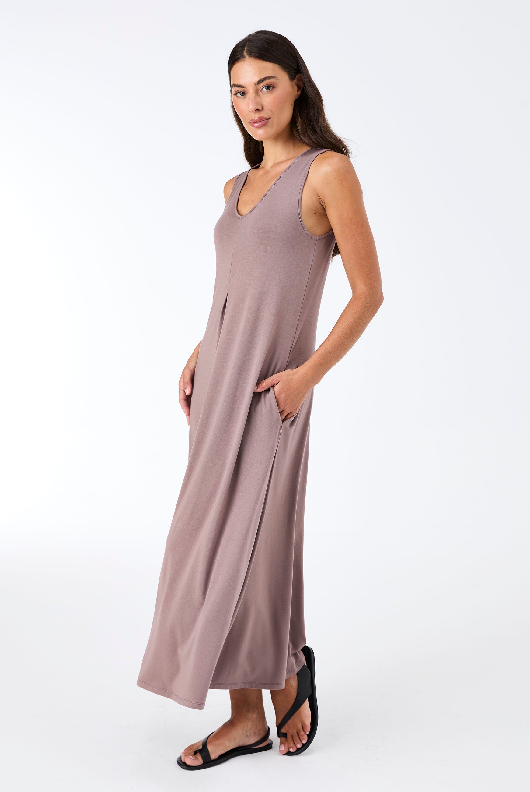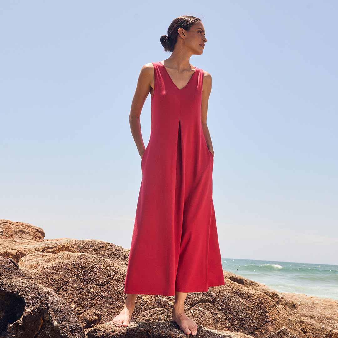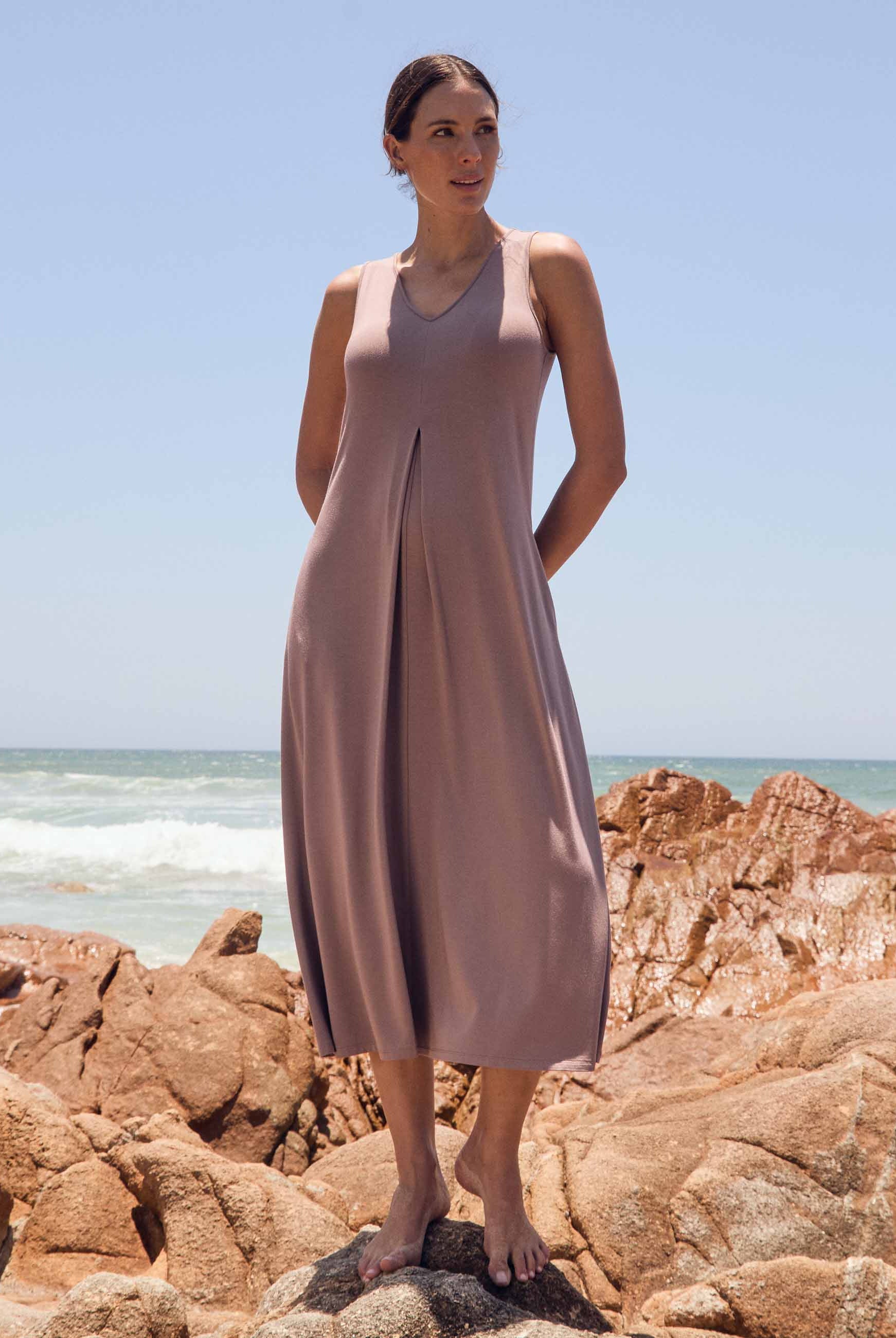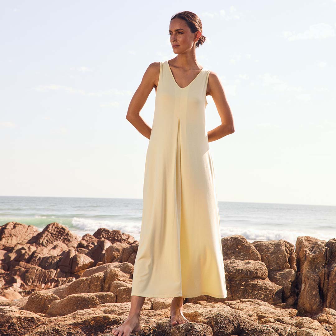 Crafted from ultra-soft, eco-friendly TENCEL™ Modal, the Dione Dress is naturally resistant to creasing thanks to the fibre’s smooth, fluid structure. The fabric drapes rather than holds wrinkles, Any light creases relax and drop out when hung, making it an ideal choice for travel.