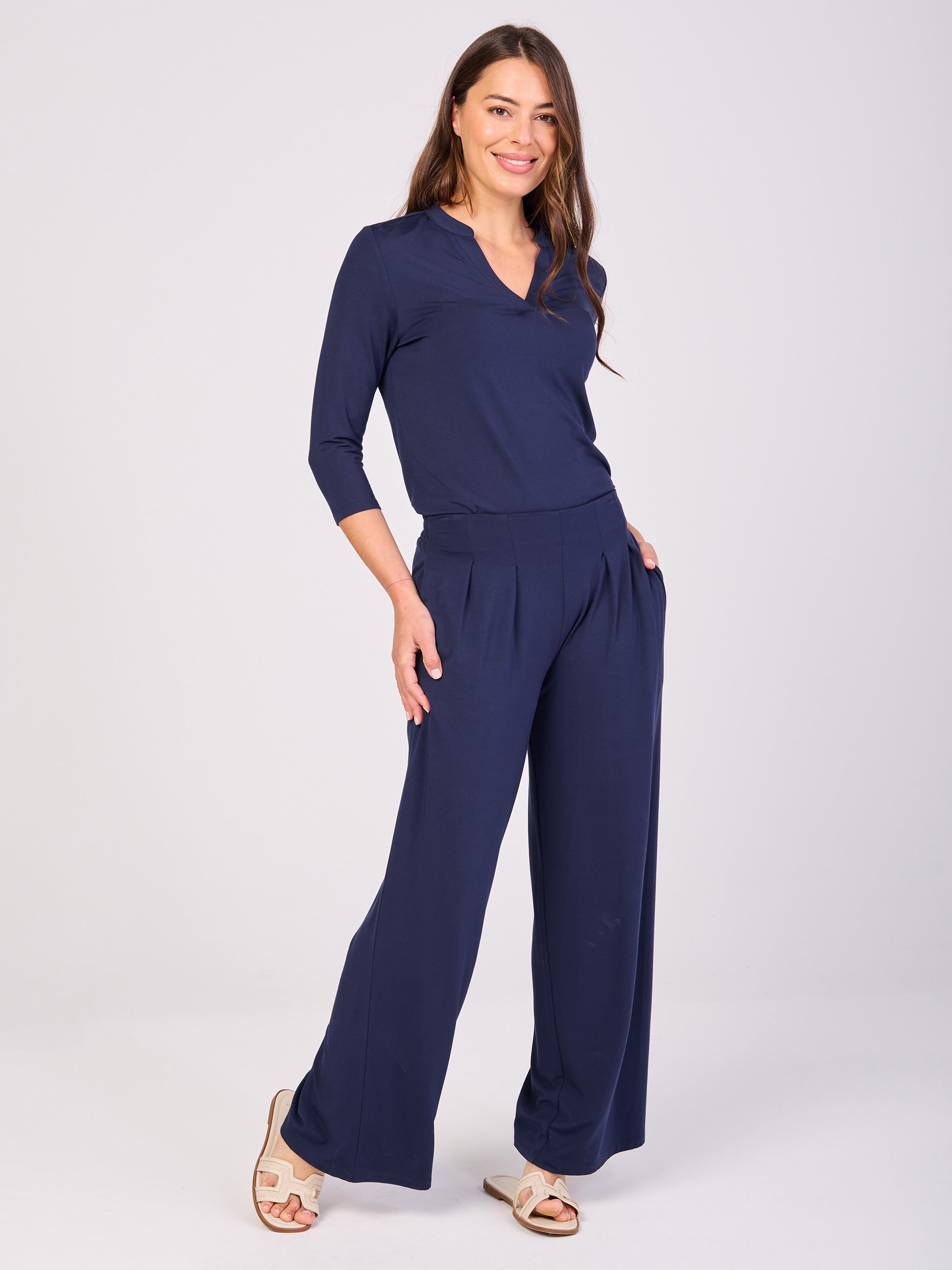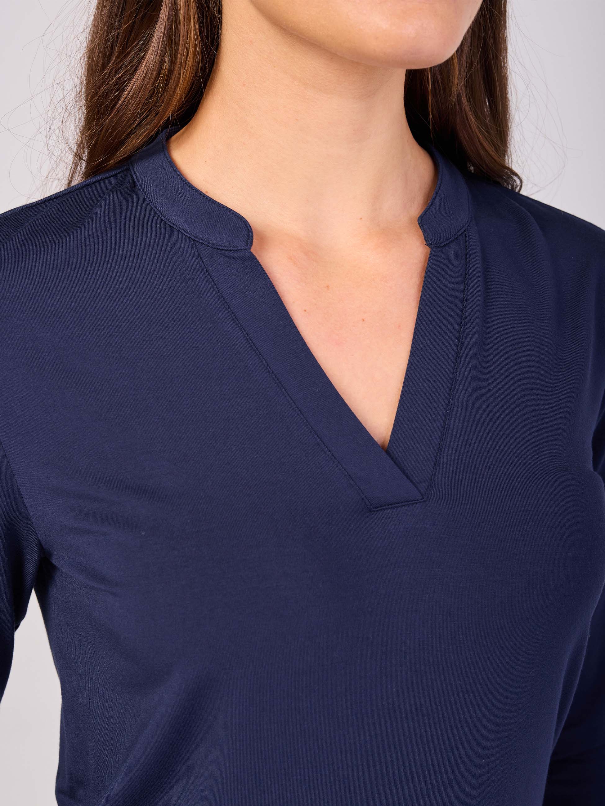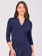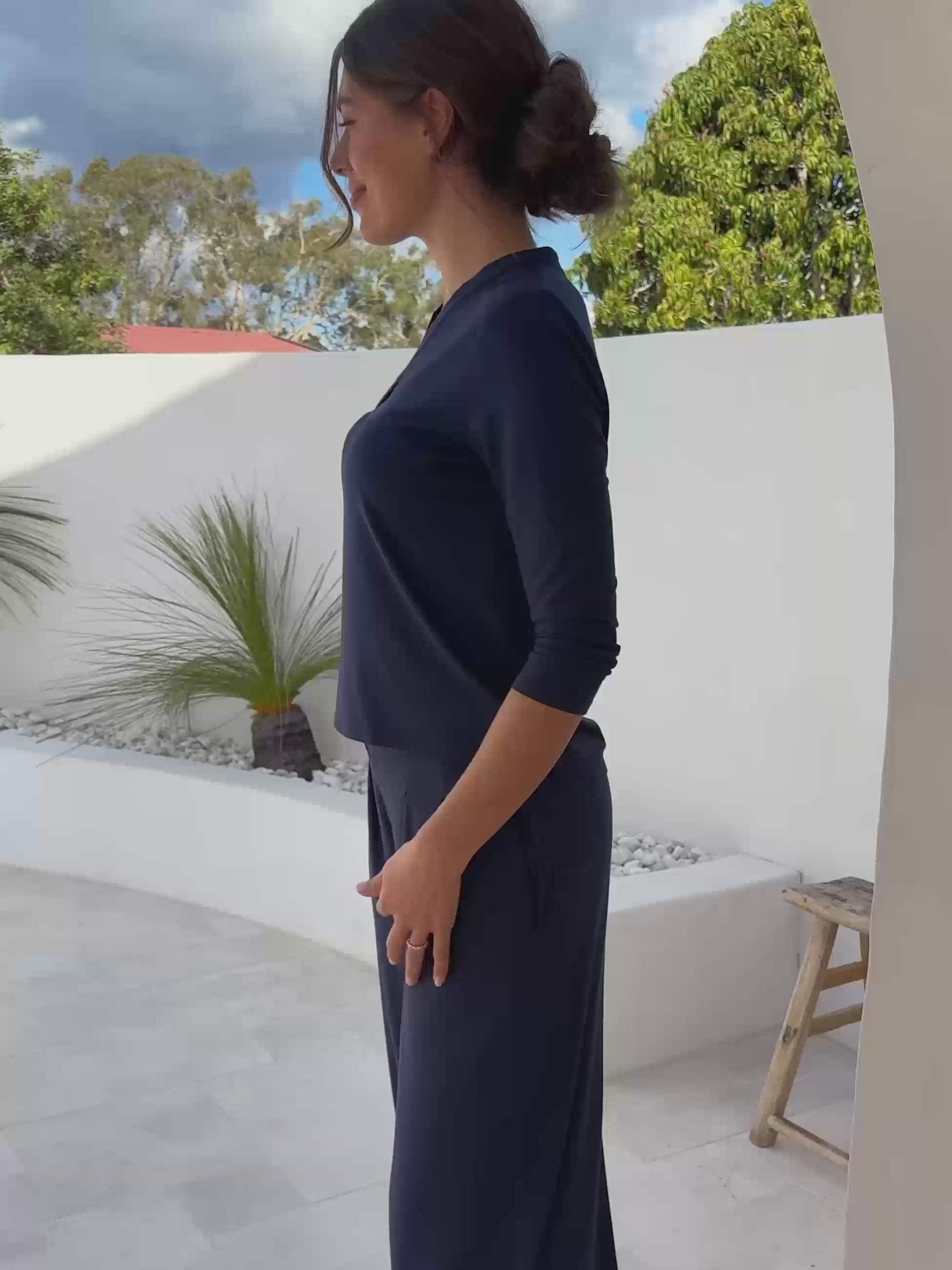 A timeless essential with a flattering twist — the 7/8 sleeve Placket Tee is designed to elevate your everyday wardrobe. Crafted from luxuriously soft and breathable Lenzing™ Modal, it delivers a premium feel with a modern silhouette. Featuring gently sculpted cap sleeves and a refined placket neckline, this tee offers an effortlessly polished look. The 7/8 length falls just below the waistline — perfect for creating shape while still providing comfortable coverage. Whether worn loose, French-tucked, or layered, it’s ideal for pairing with high-waisted pants, skirts, or denim.