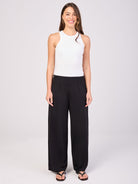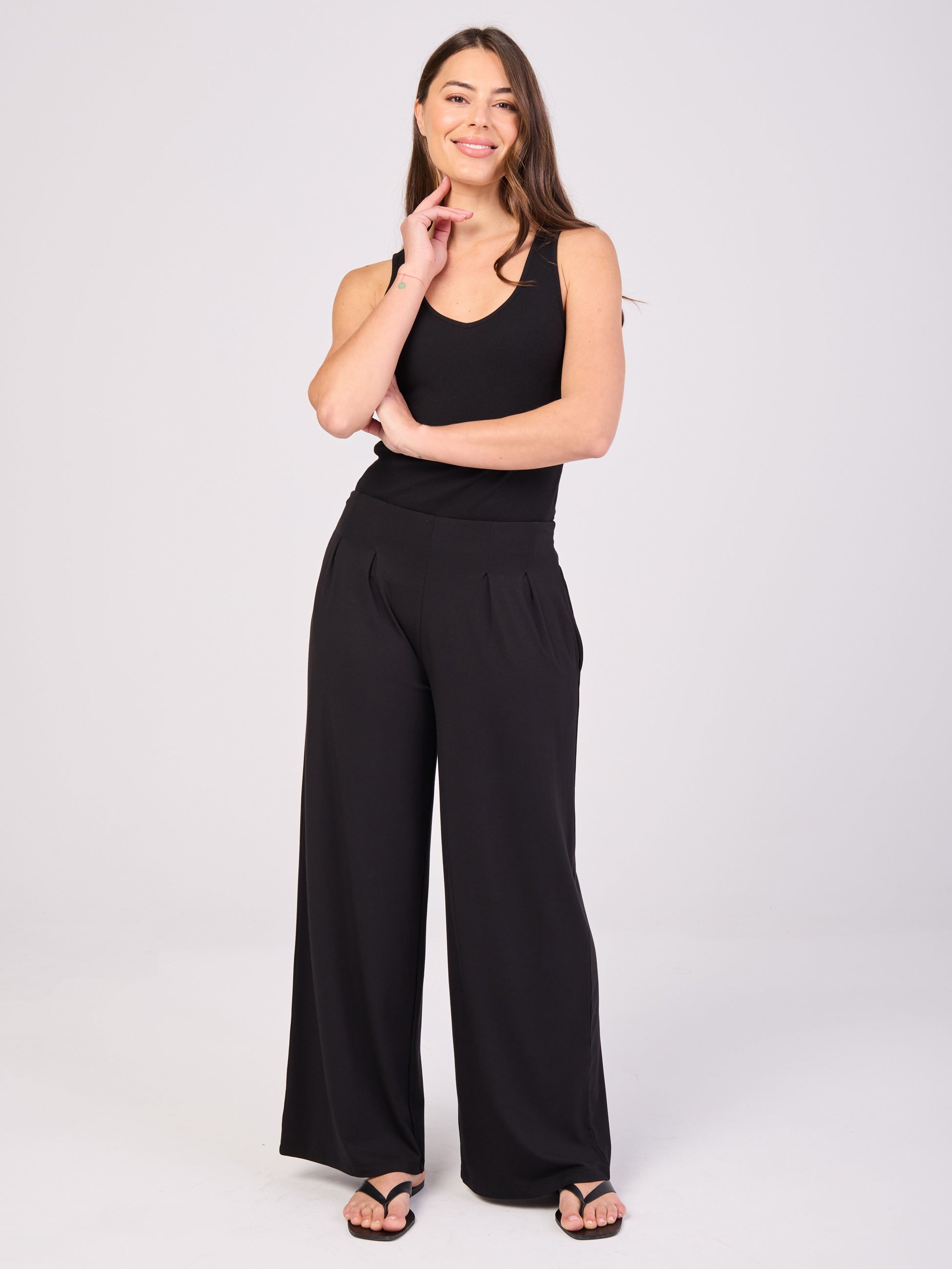 Complete with deep side pockets and a flowing, wide-leg silhouette, this pant is your go-to for effortless sophistication — whether styled for the office, the weekend, or anywhere in between.