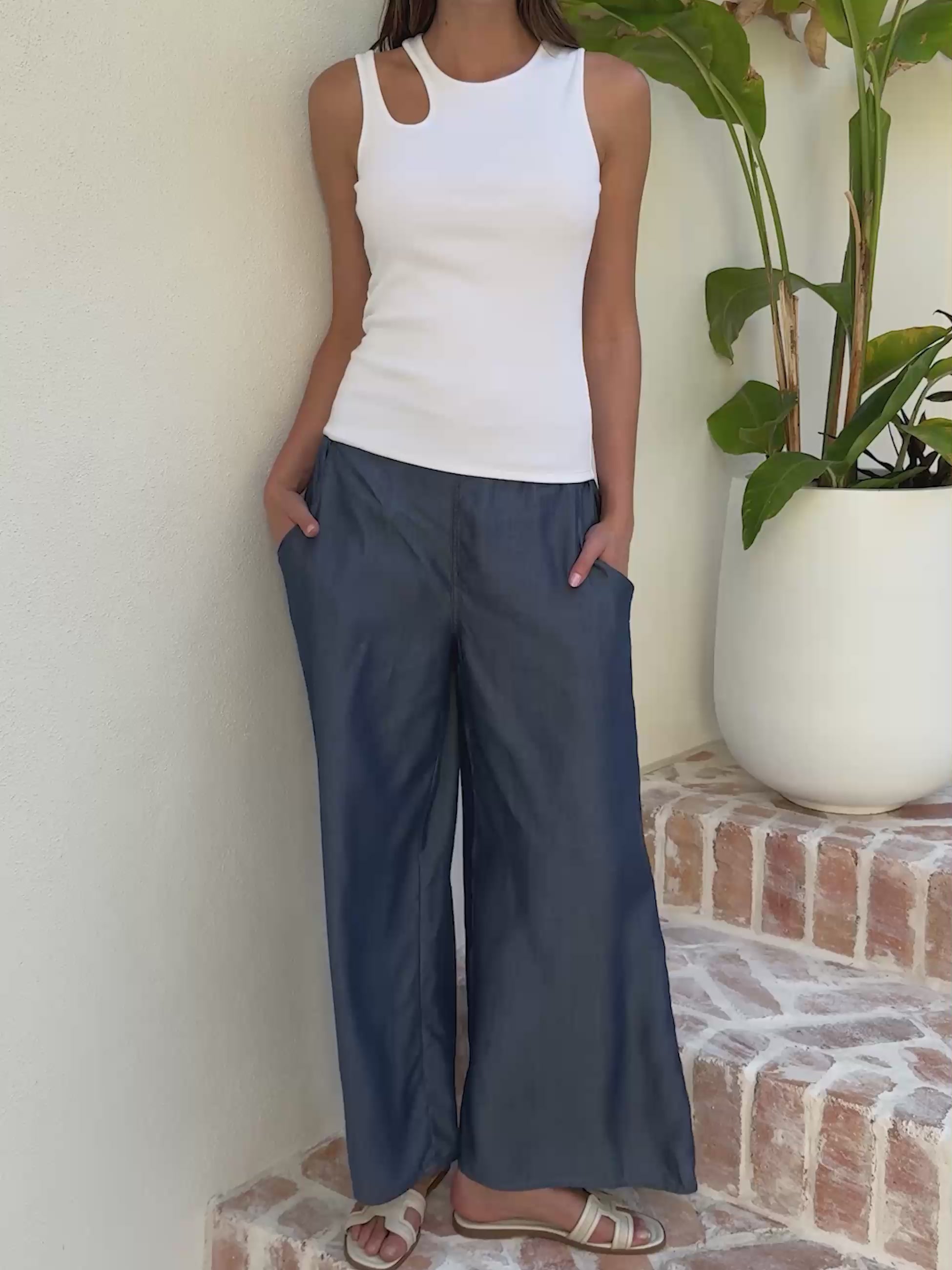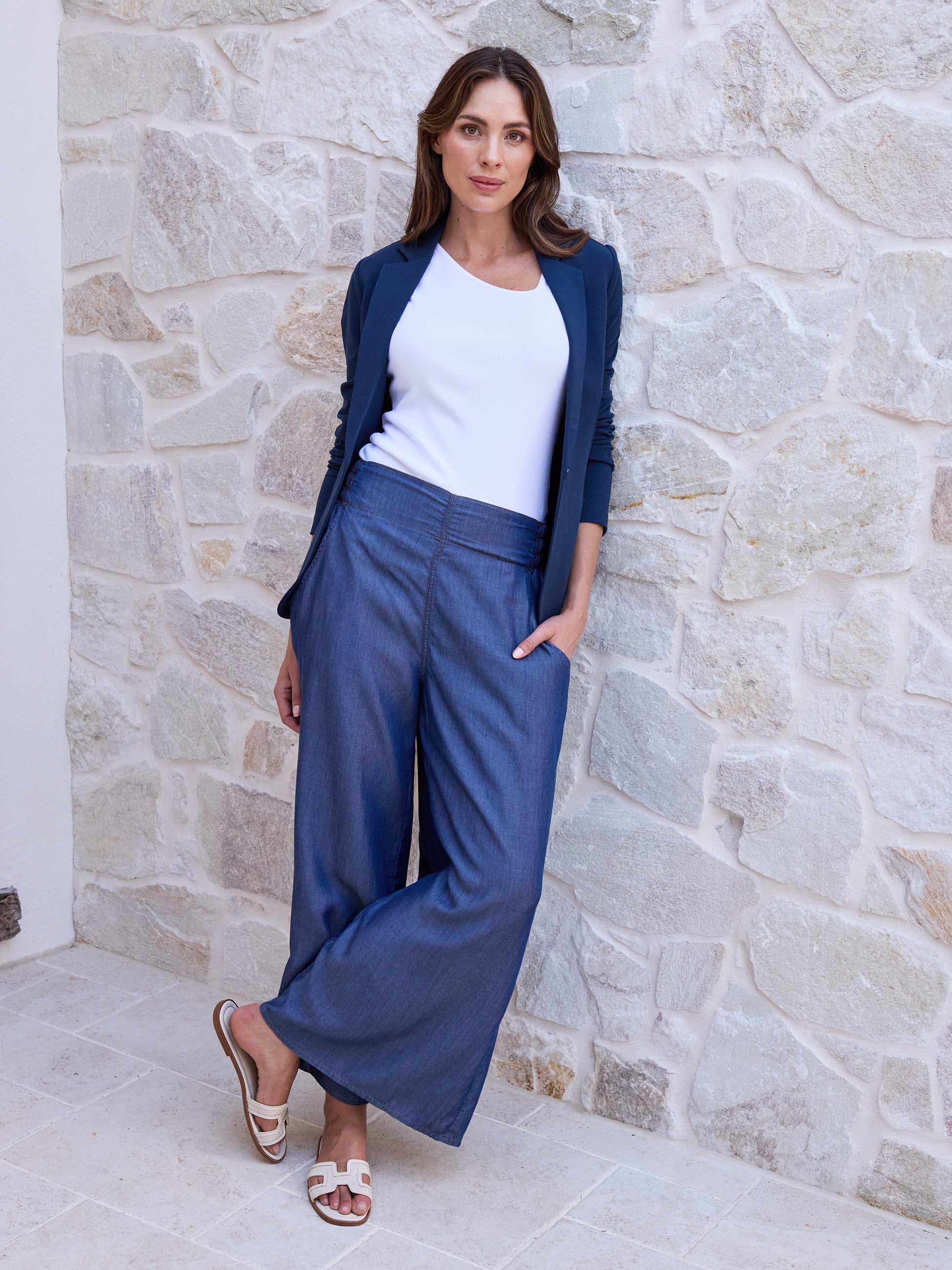 The Emelia Pant is all about effortless comfort with a polished edge. Made in soft, sustainable Tencel. The flat front waistband creates a sleek, tailored look, while the elastic back ensures a flexible fit that moves with you. Designed to feel easy from morning to night, the relaxed leg drapes softly for a flattering silhouette you’ll want to wear every day.