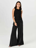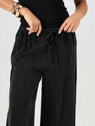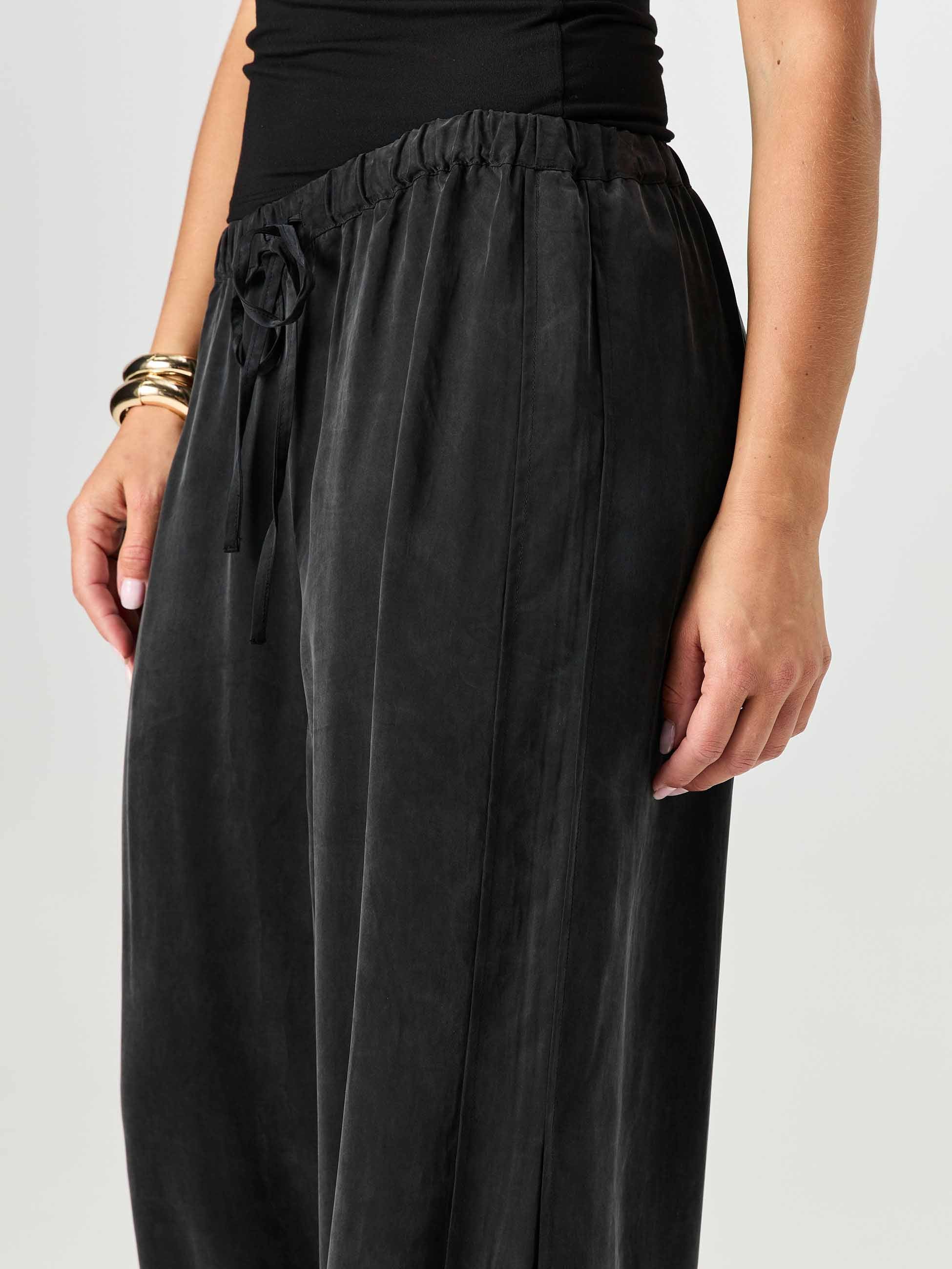 The elastic waist and adjustable tie mean the fit is always just right, whether you're at your desk, heading to lunch, or packing them into a carry-on. Pleat detailing at the sides adds a quiet structure that keeps things looking intentional.