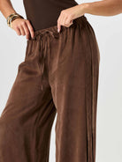 The elastic waist and adjustable tie mean the fit is always just right, whether you're at your desk, heading to lunch, or packing them into a carry-on. Pleat detailing at the sides adds a quiet structure that keeps things looking intentional.