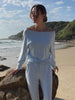 French Terry Off Shoulder Sweatshirt - Cashmere Blue
