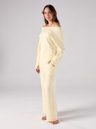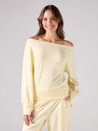 French Terry Off Shoulder Sweatshirt - Pastel Yellow