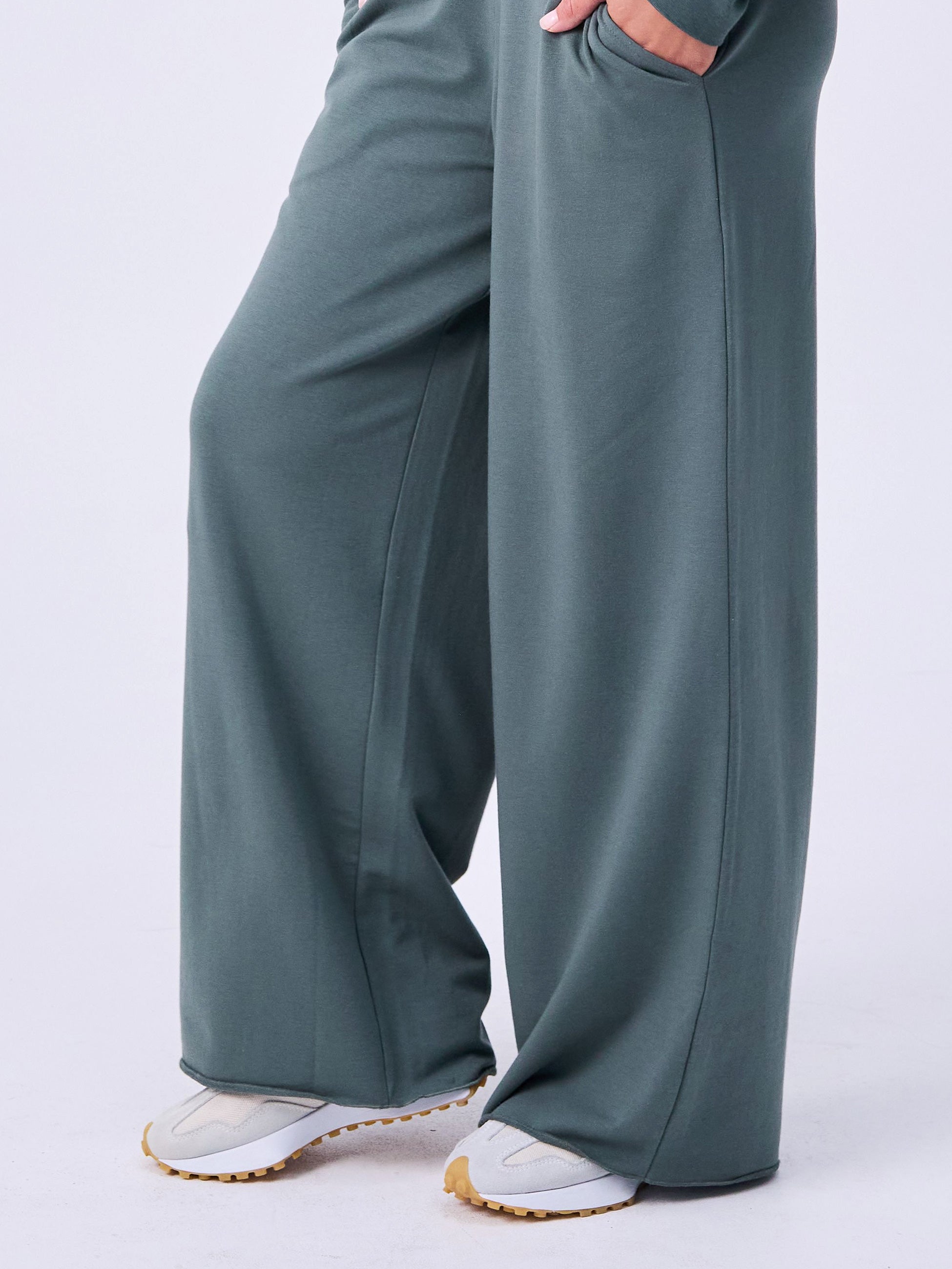 Made in our signature super soft Modal French Terry, The wide-leg Yin pant is designed to take you from studio to street. With a flattering V-back design, soft drawcord waist, and wide leg with a raw edge finish. These will be on high rotation.  Fabric sustainable Tencel Modal, chemical free. The garment is true to size. Inside leg 73cm