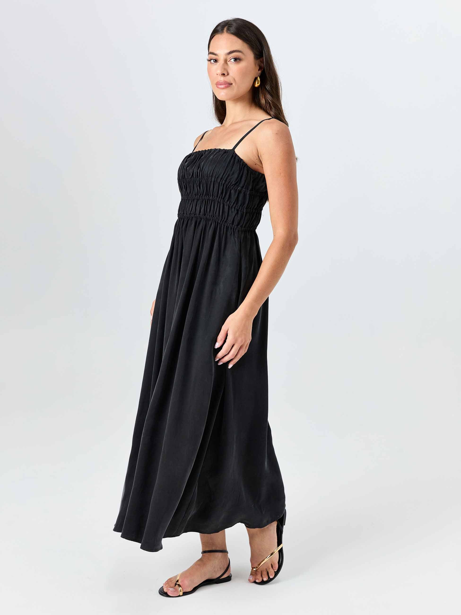 The Luna Dress moves the way you do. Fluid and mid-length, it has that effortless drape that makes getting dressed feel like the easiest part of your day. The fitted ruched bust adds gentle shape without clinging, and the adjustable slider straps mean you can get the fit exactly right, every time.