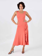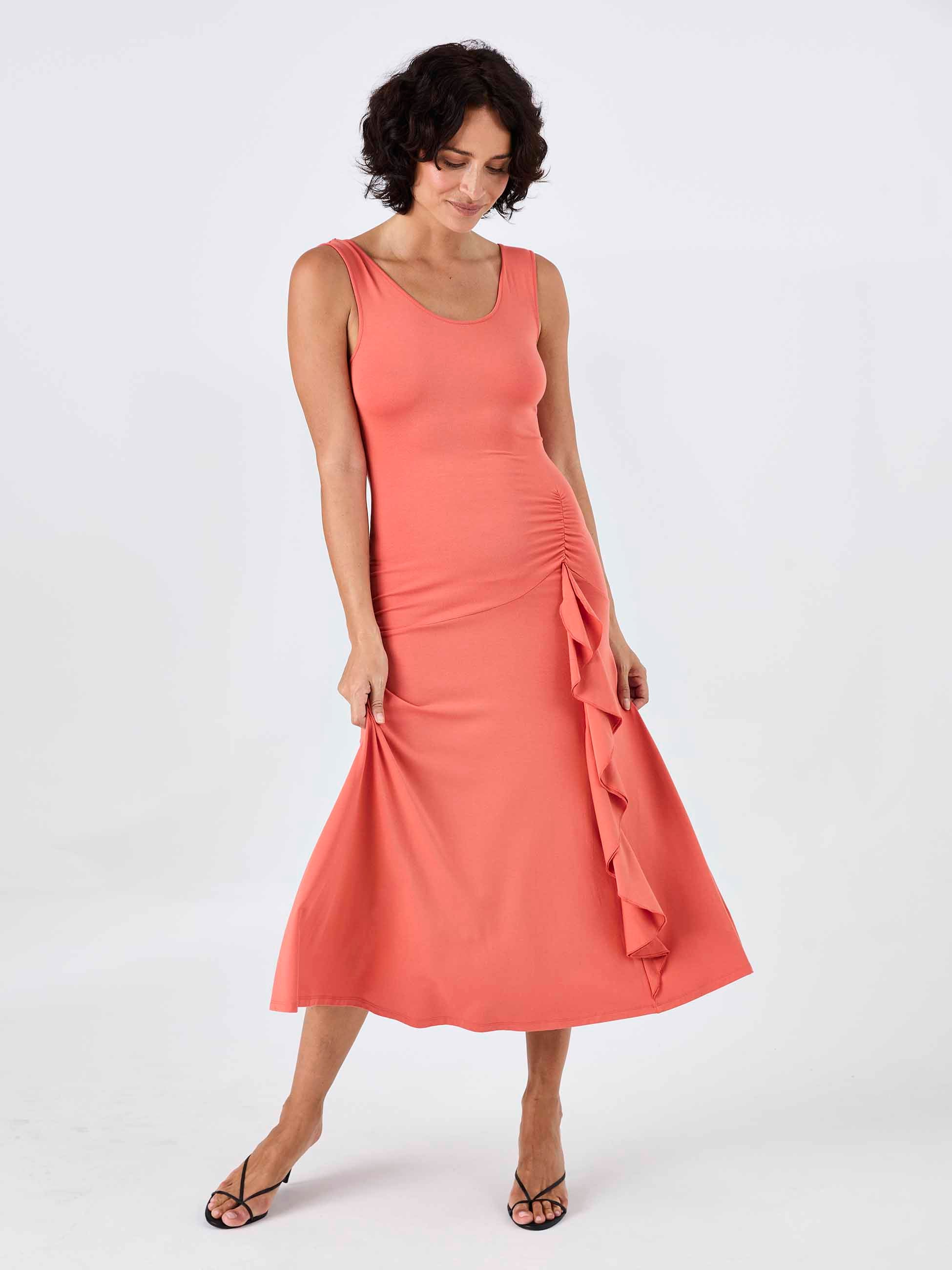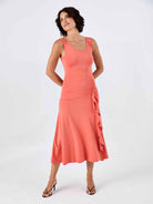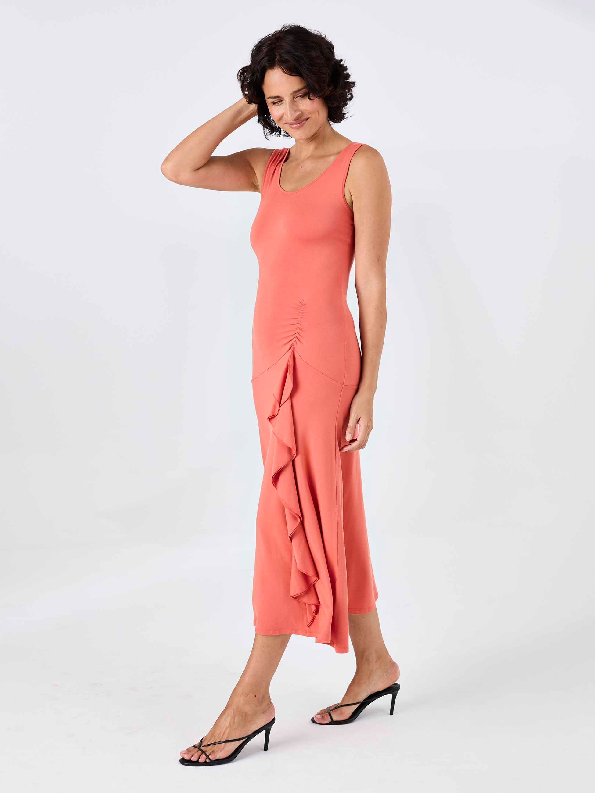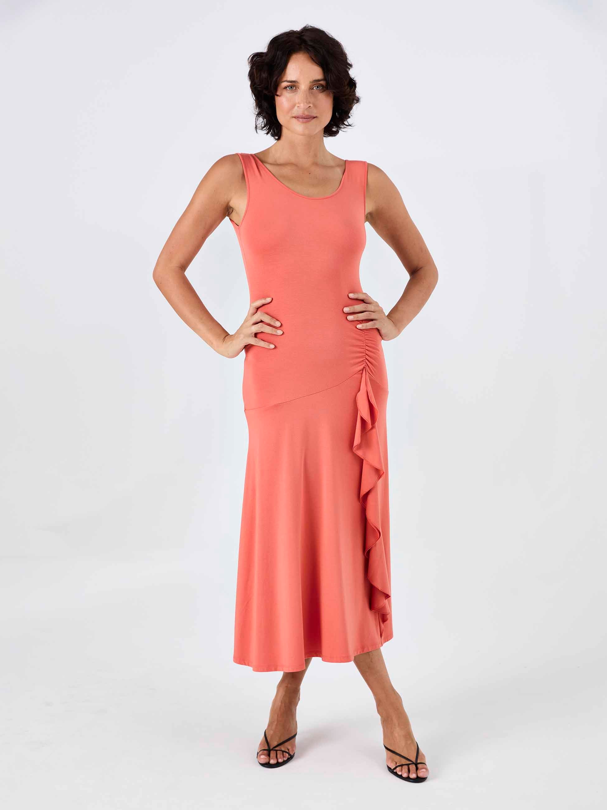 The Sculpted Frill Dress is designed to celebrate shape and movement. A soft frill along the side creates a flattering line through the body, while the paneled full skirt brings gentle volume and flow. The result is a beautifully balanced silhouette that feels effortless to wear. Dress length is 120cm for a small and increases 1cm for each size up.