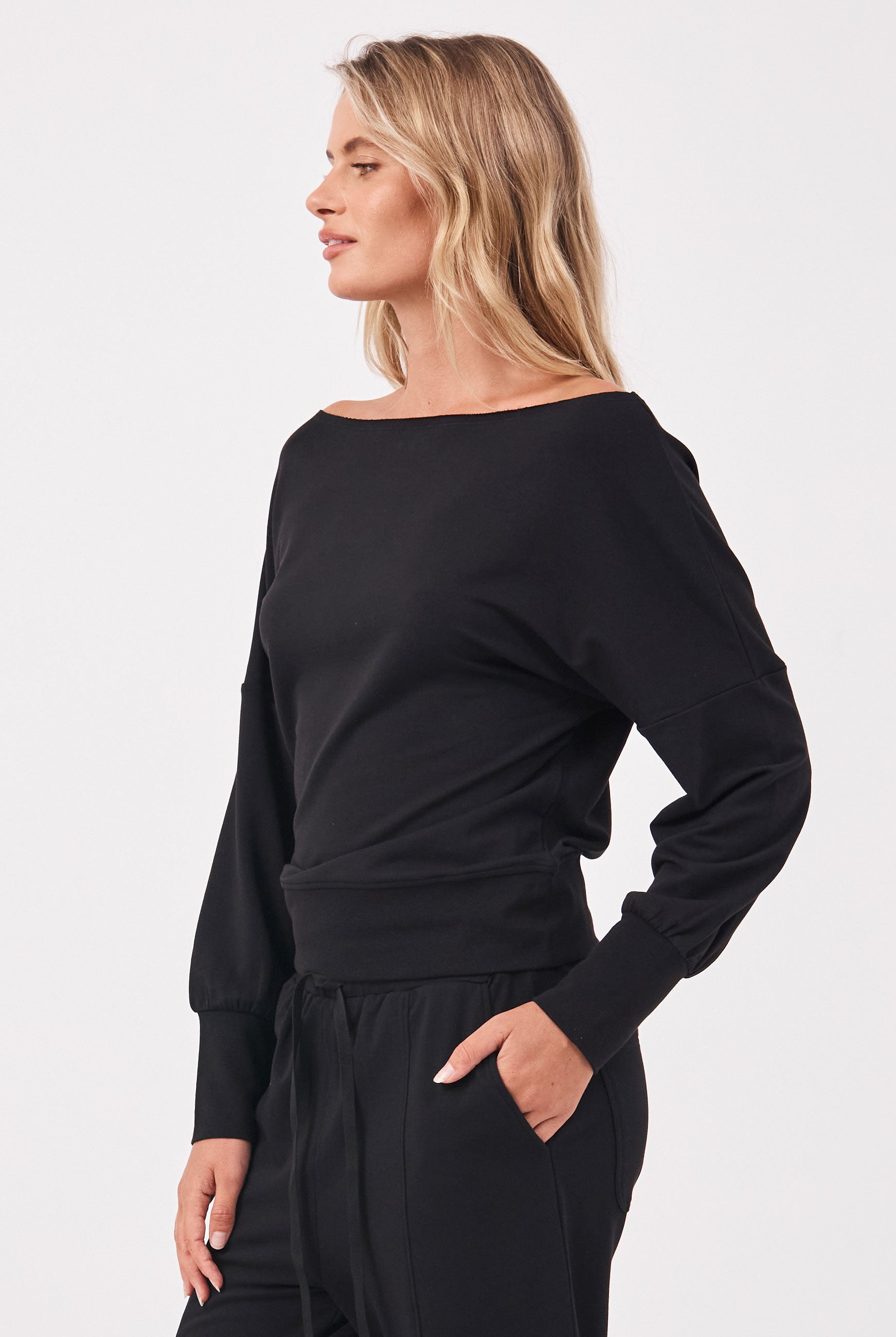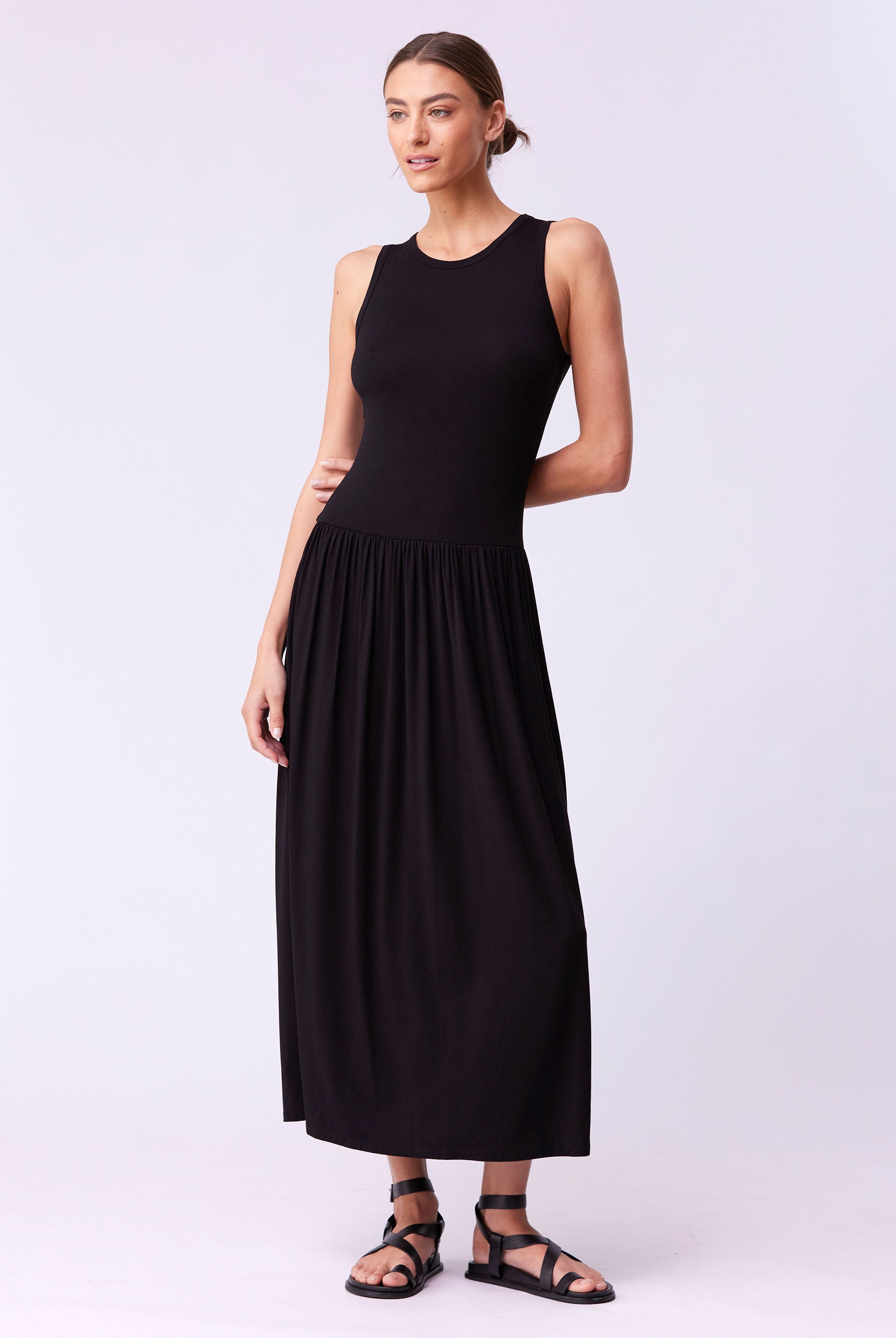 - Flattering drape from the shoulders with a hip-skimming band that isn’t baggy