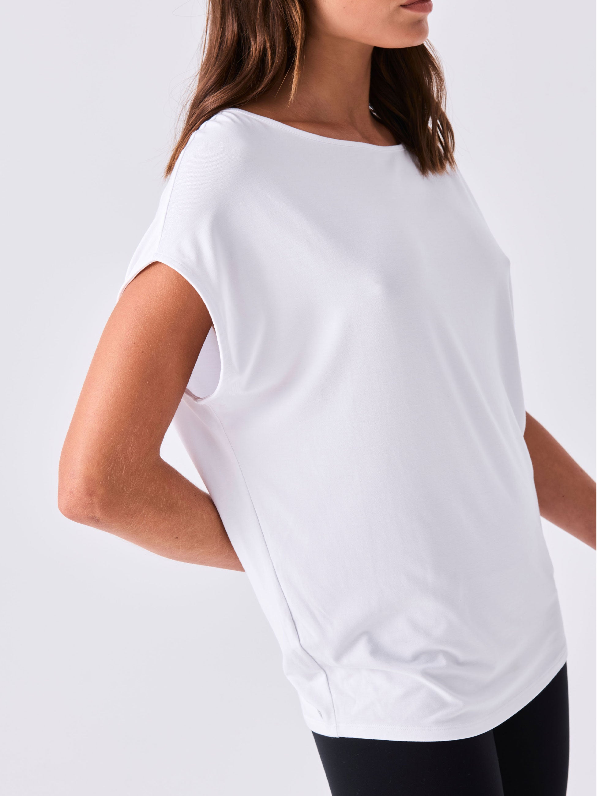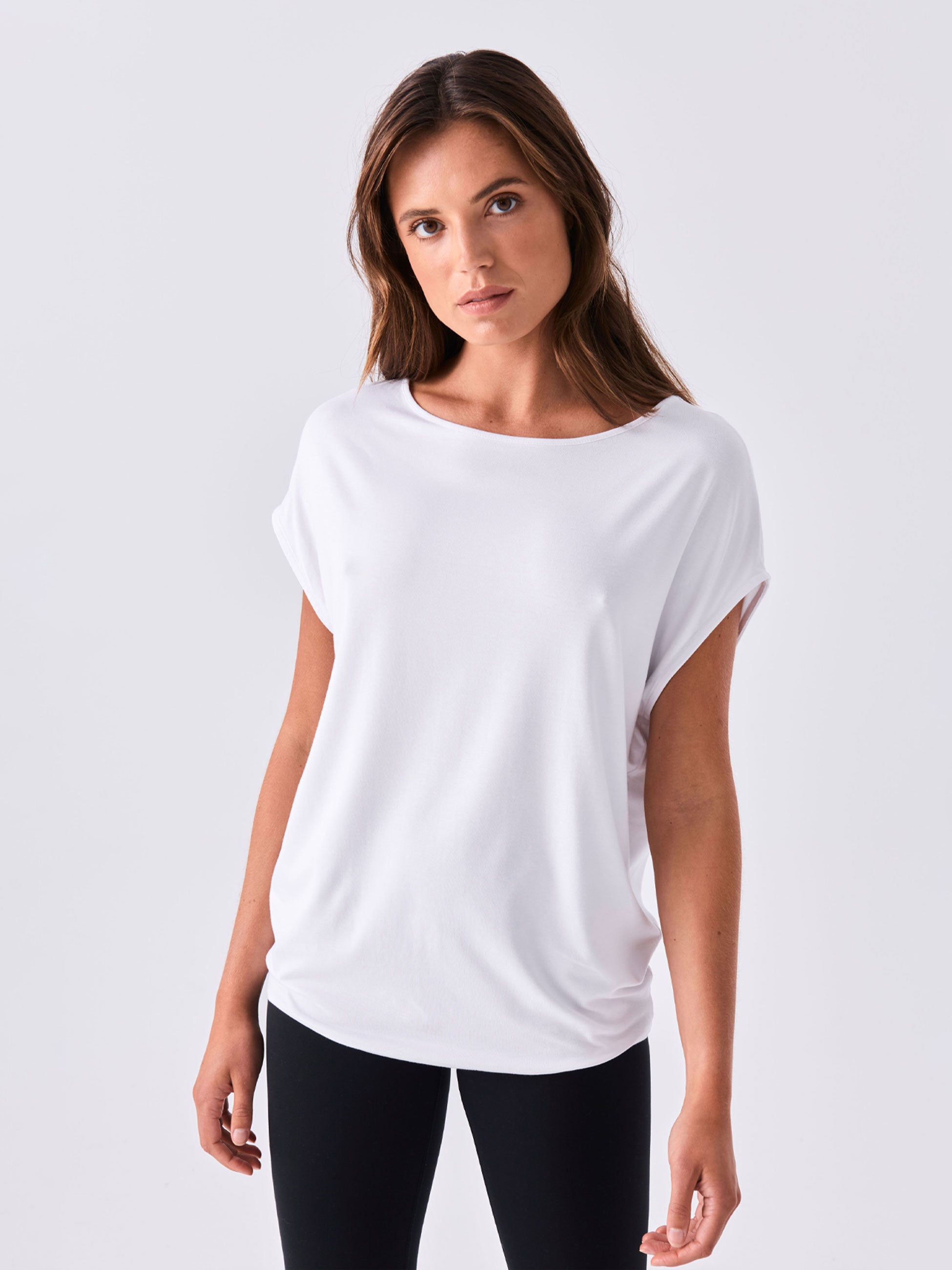 Shoppers keep reaching for this tee because the modal fabric feels “so soft” and falls in a way that skims the midsection while sitting neatly on the hips. It dresses up under a blazer or down with jeans, and many buyers immediately ordered more colors after the first wear. The white gets special praise for being opaque, and the breathable weight stays cool in warmer weather.
