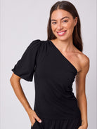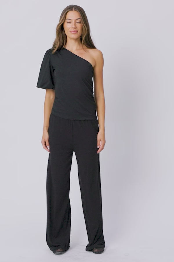 One Shoulder Bell Sleeve Top - Black