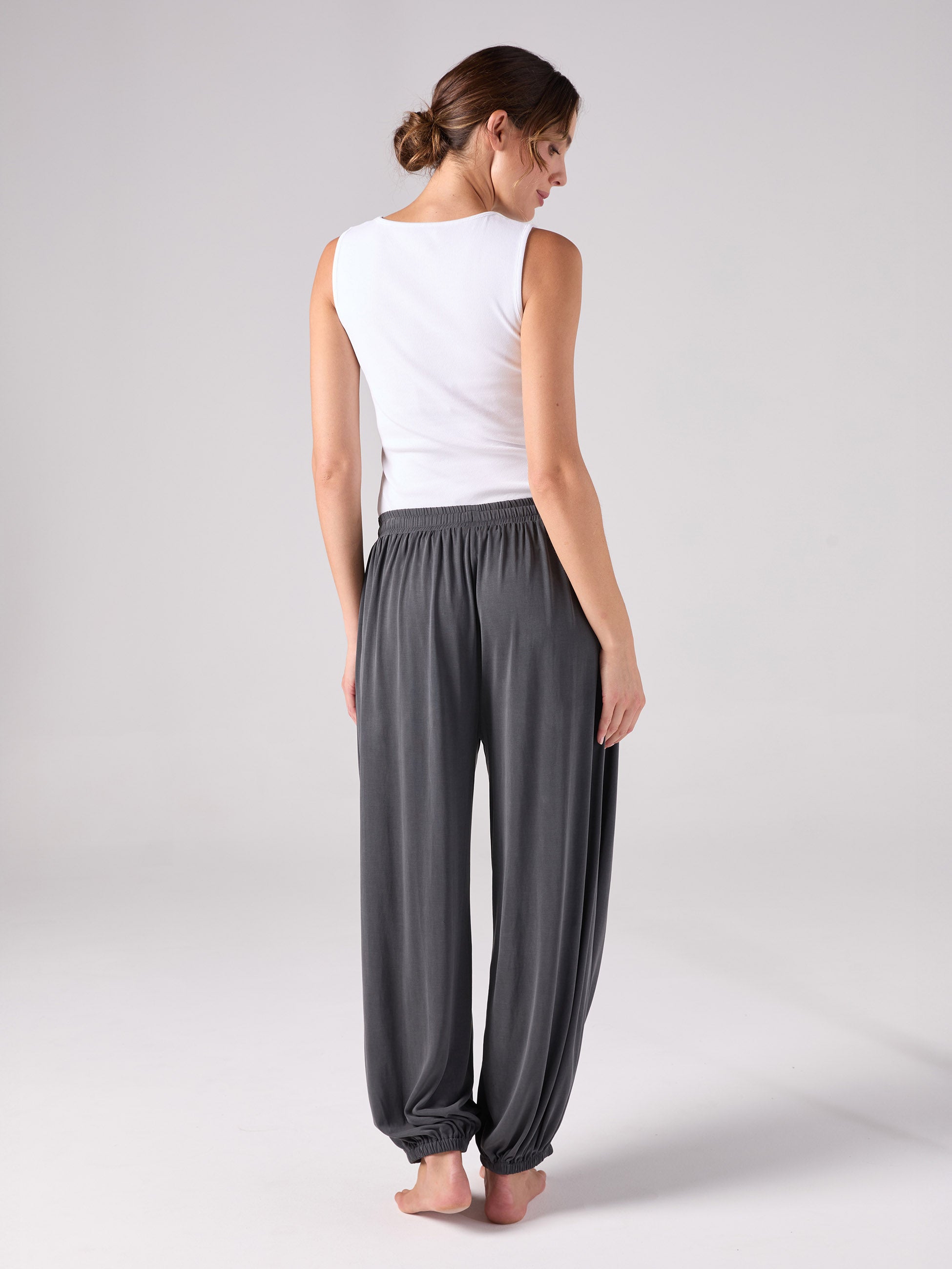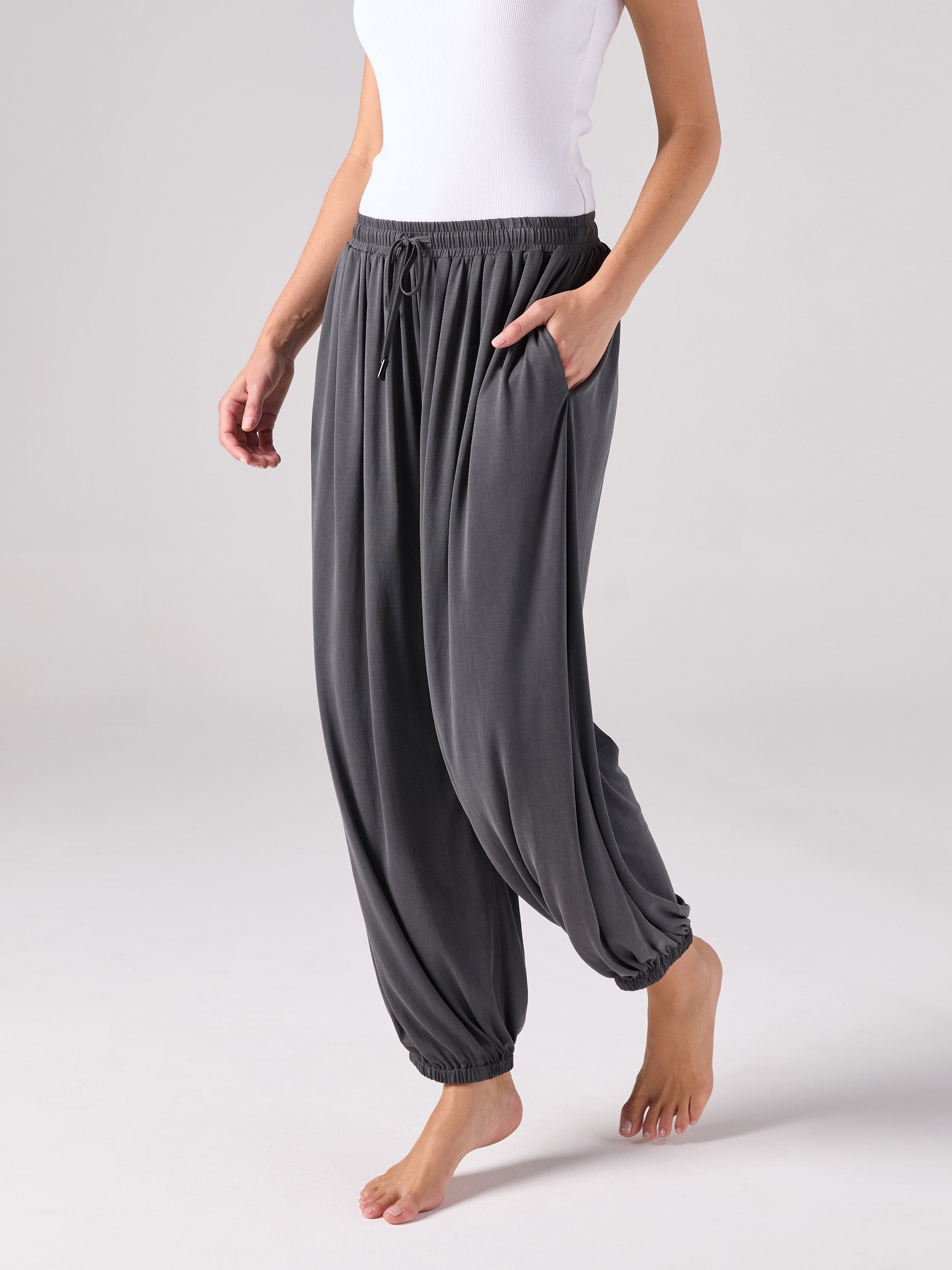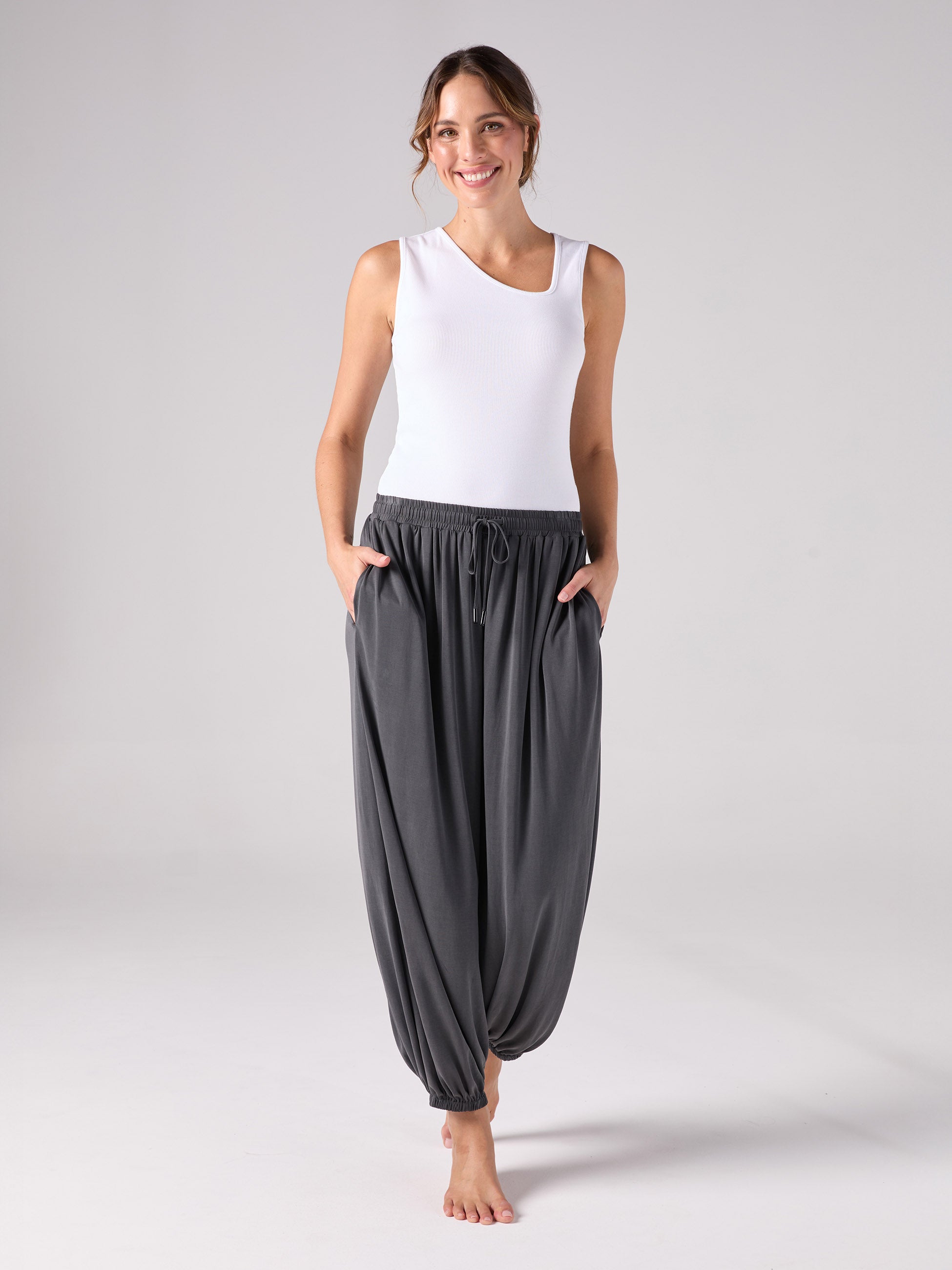 The Oxygen Pant is perfect for pre, post, and everywhere in between. Made in super soft and breathable Modal Cupro. With a drawcord mid-rise fit, in a classic ankle length, they take comfort to another level. This garment is skin-kind and chemical-free. The modal wears a small. Inside leg 68cm.