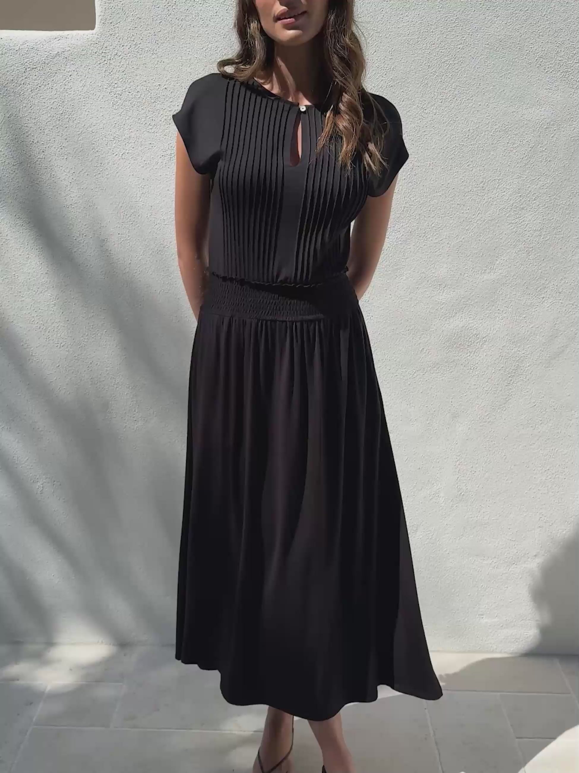 Our Long Pintuck Maxi Dress is a timeless wardrobe essential, designed to move with you through every part of your day. Featuring delicate pintuck detailing for a soft, elevated finish, this maxi is all about relaxed refinement. Flattering cap sleeves and a shirred elastic waist enhance the silhouette while offering all-day comfort. Thoughtfully designed with side pockets for ease and practicality, it’s the kind of piece you’ll reach for on repeat. Whether dressed up or worn casually, this dress oozes effortless style and laid-back confidence.