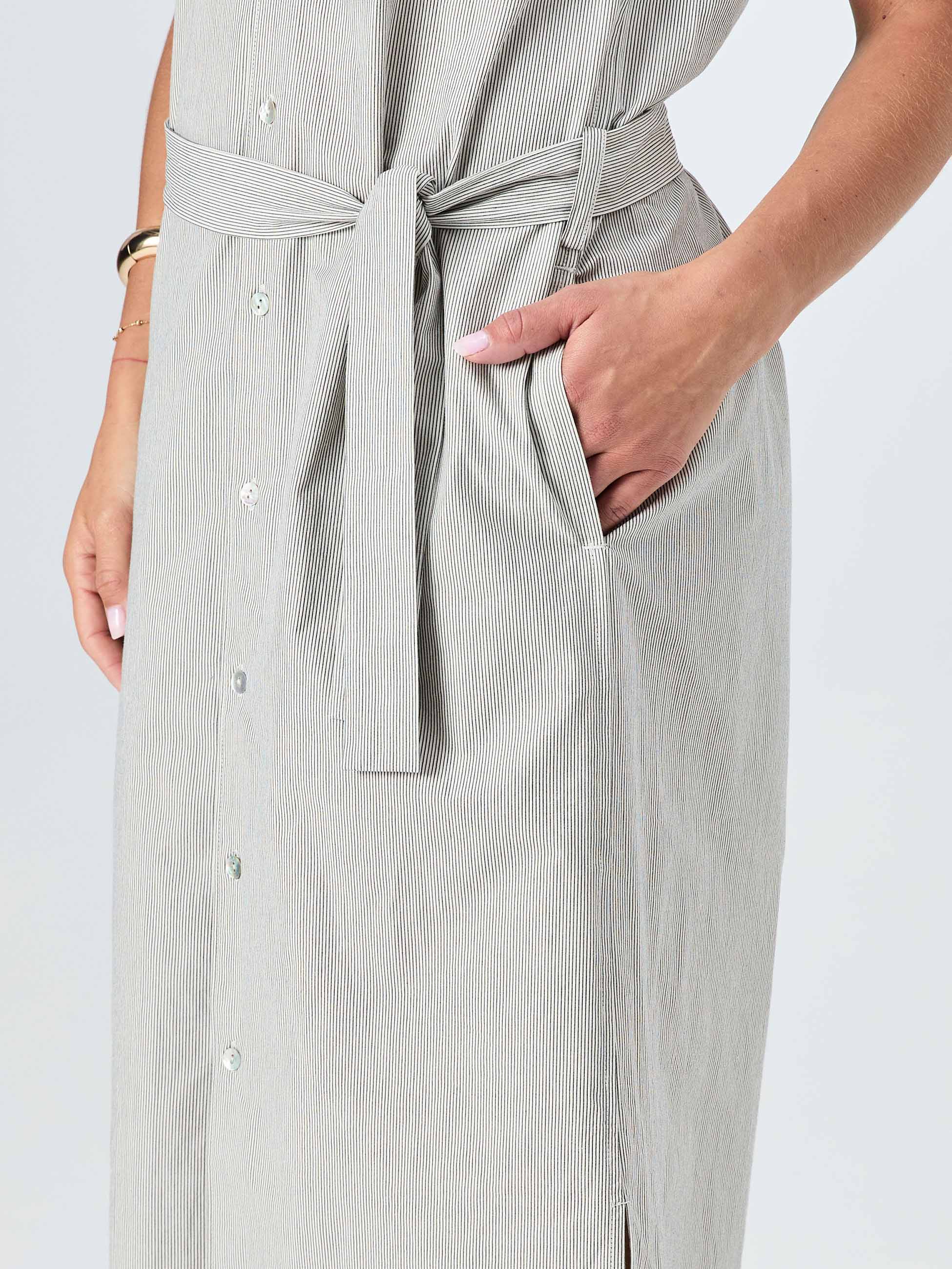 Made from sustainable fibre, it's free from harmful chemicals and kind to your skin all day long. Side pockets, because of course. Sleeveless and breathable, it moves from desk to dinner, market to meeting, without missing a beat.