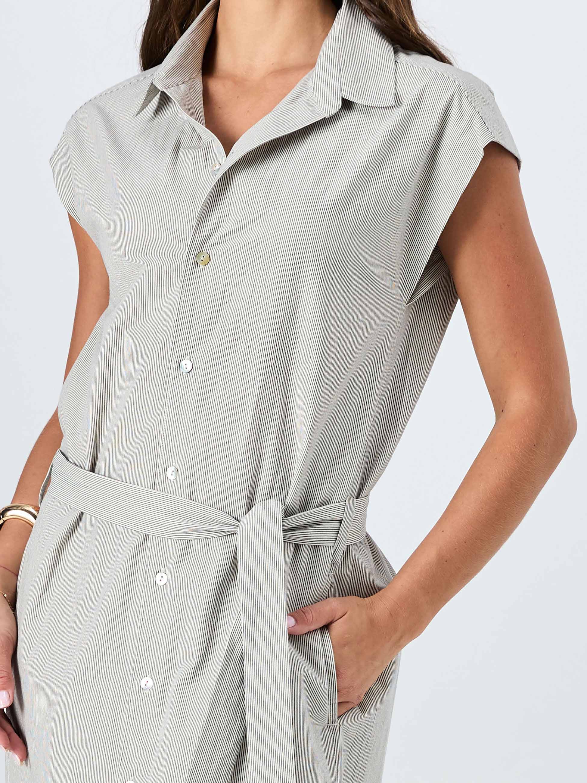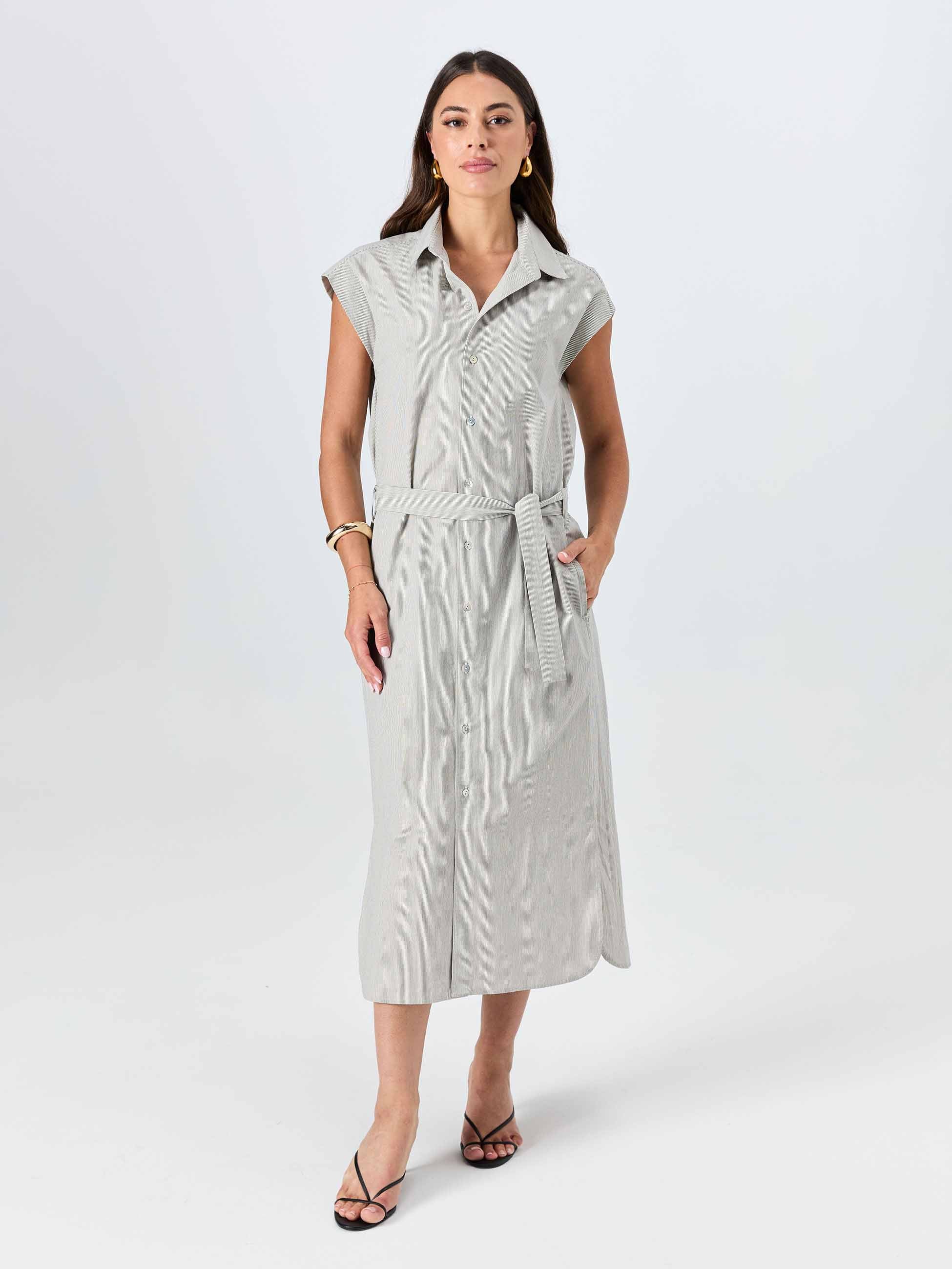 Poplin Shirt Dress - Black & White Stripe