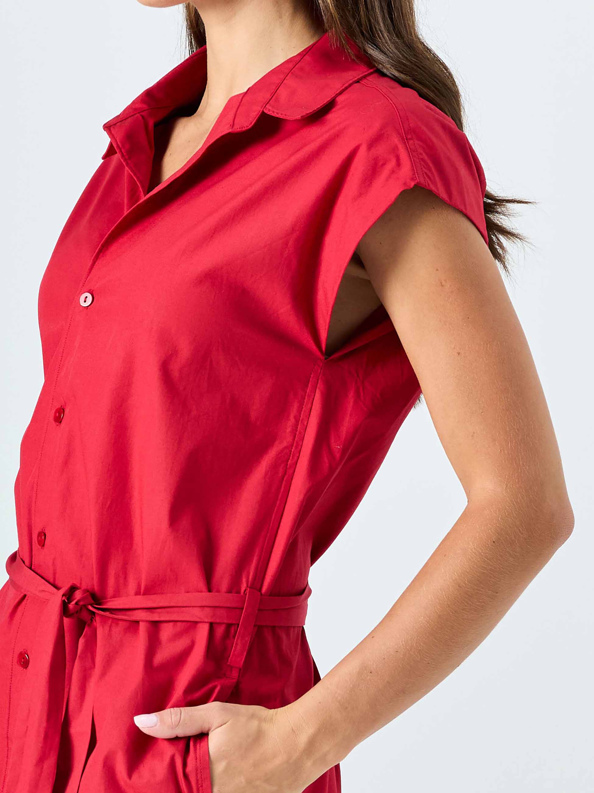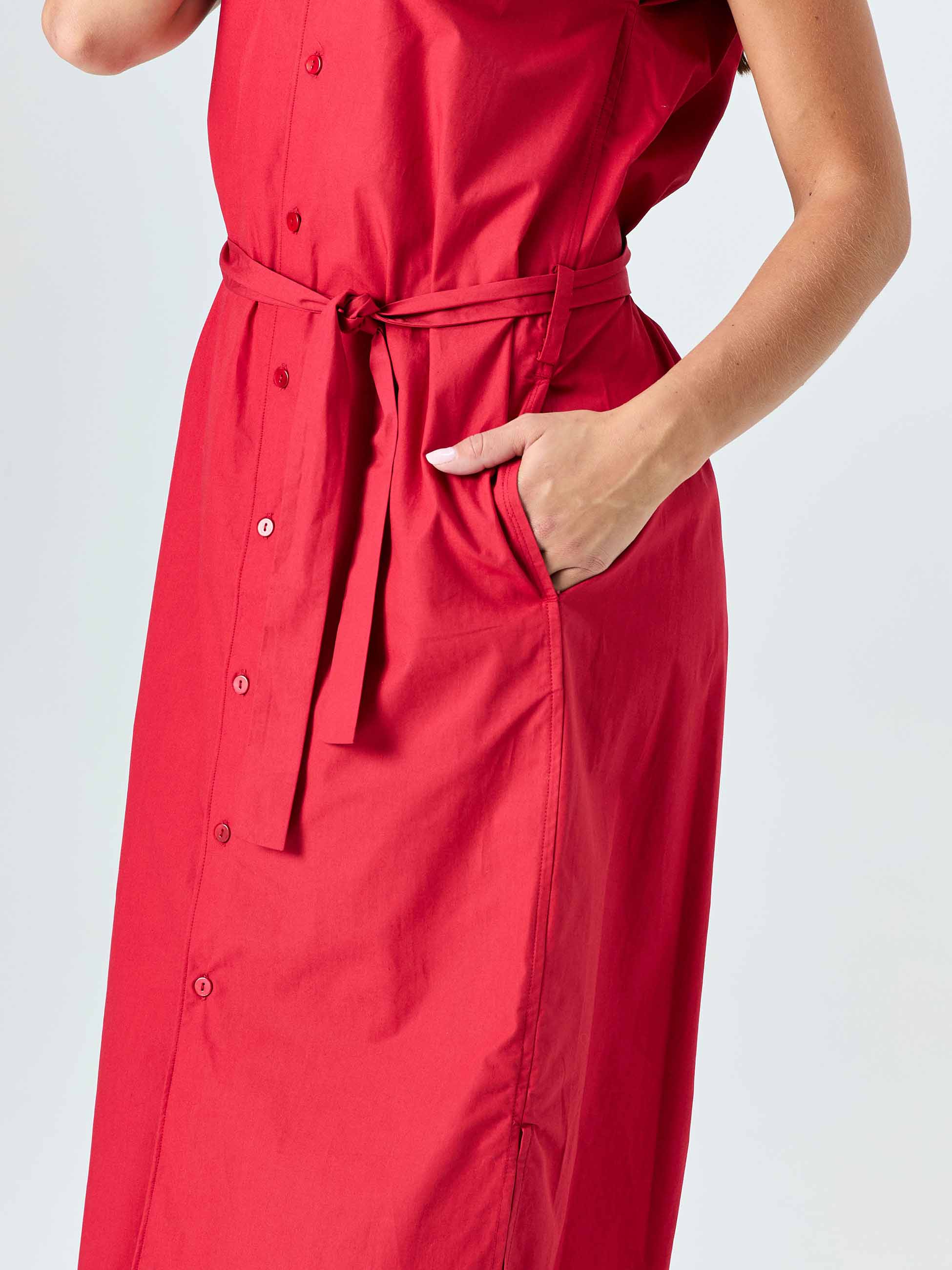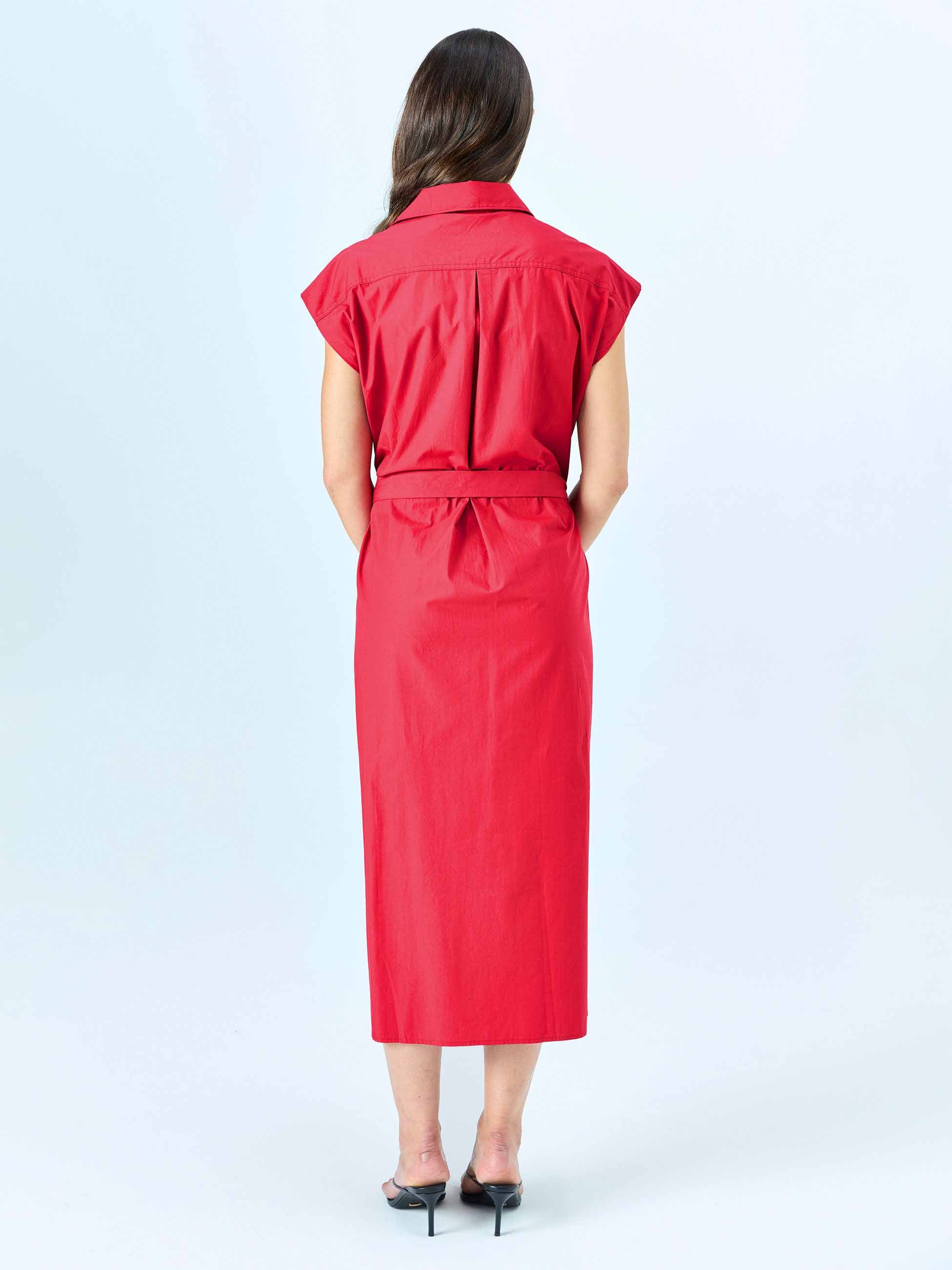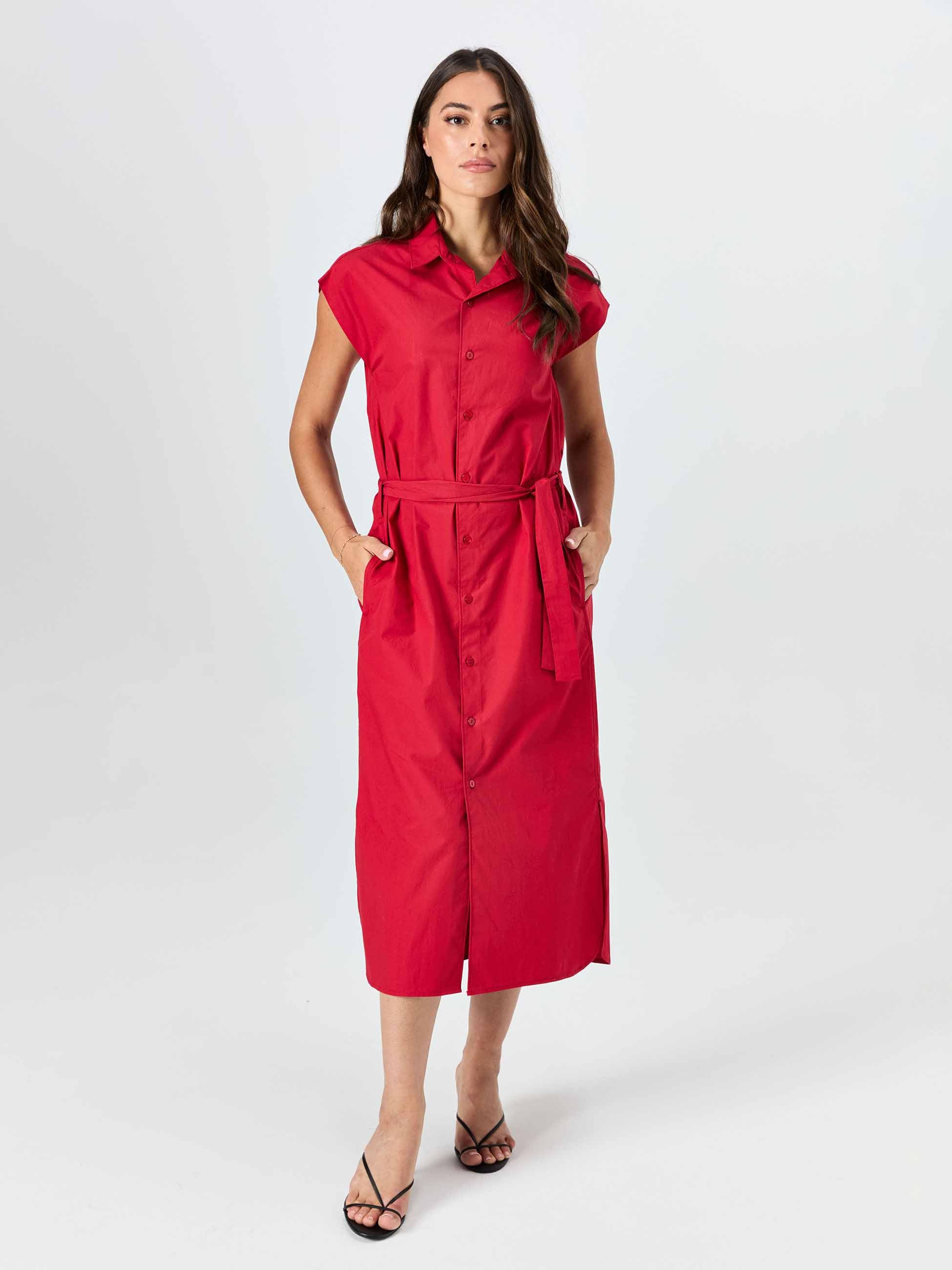 Poplin Shirt Dress - Cherry