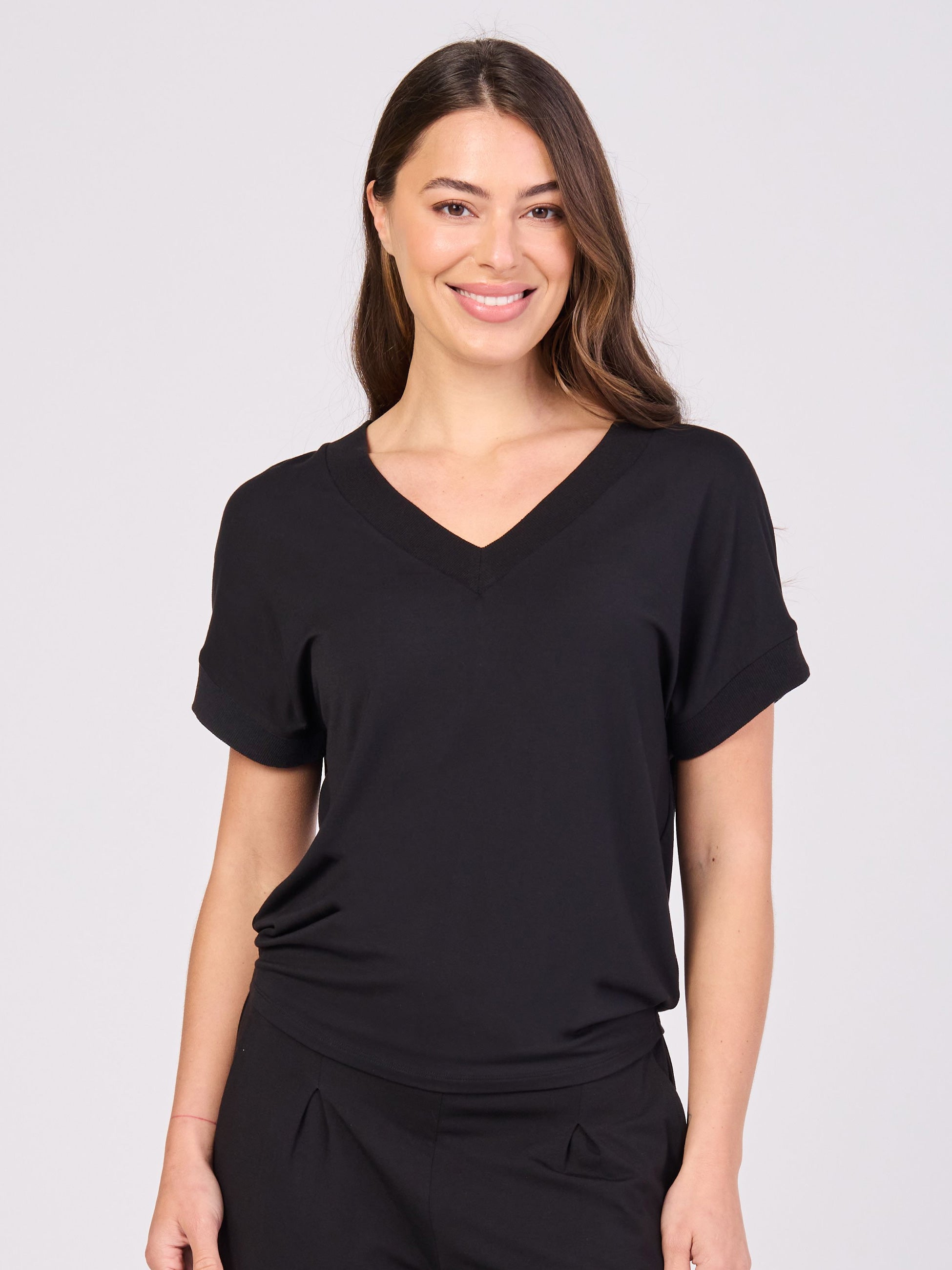Simone V Neck Top- Black