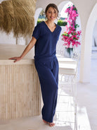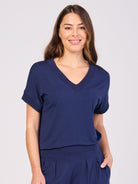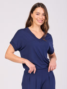 Simone V Neck Top- Navy