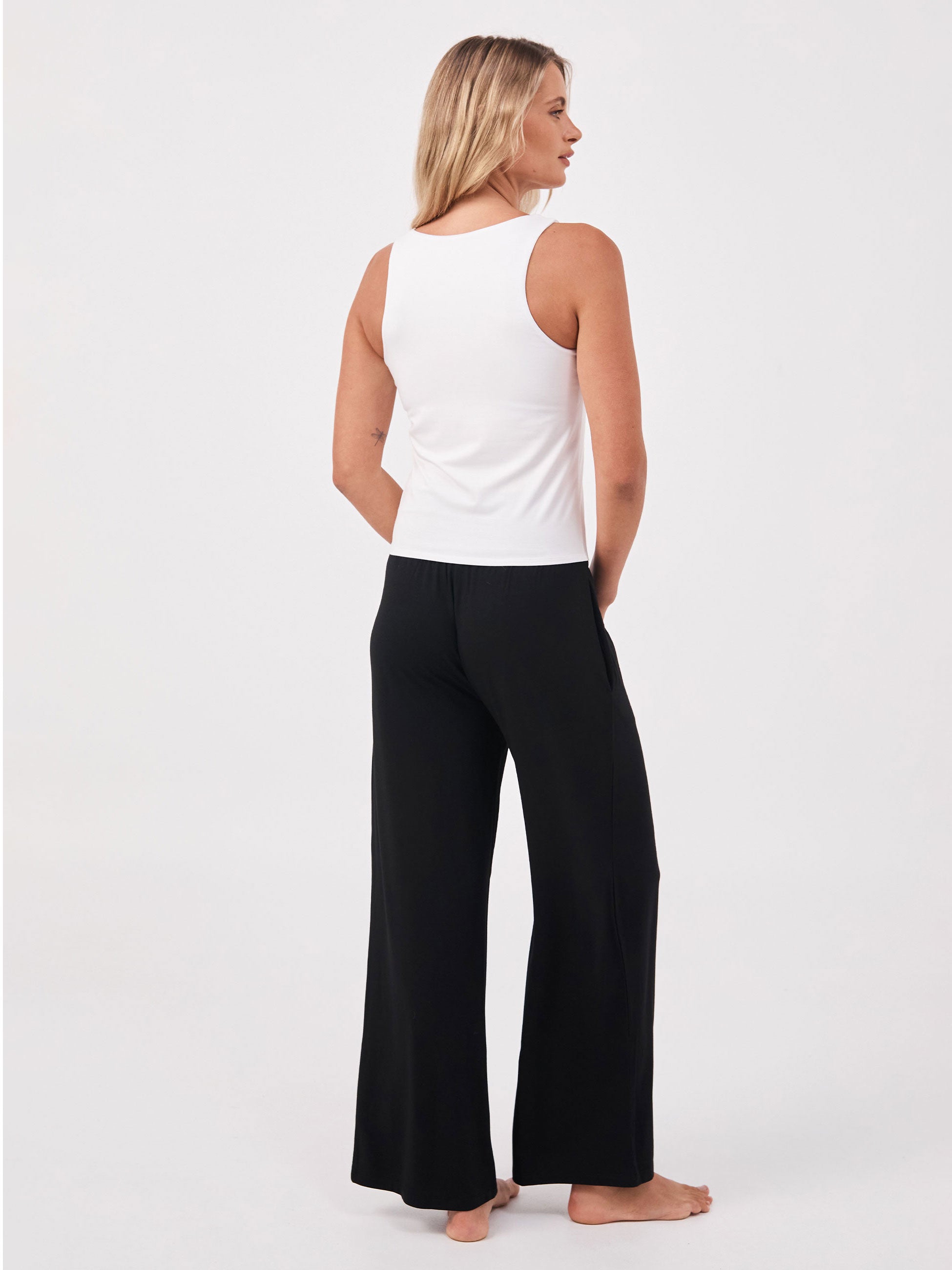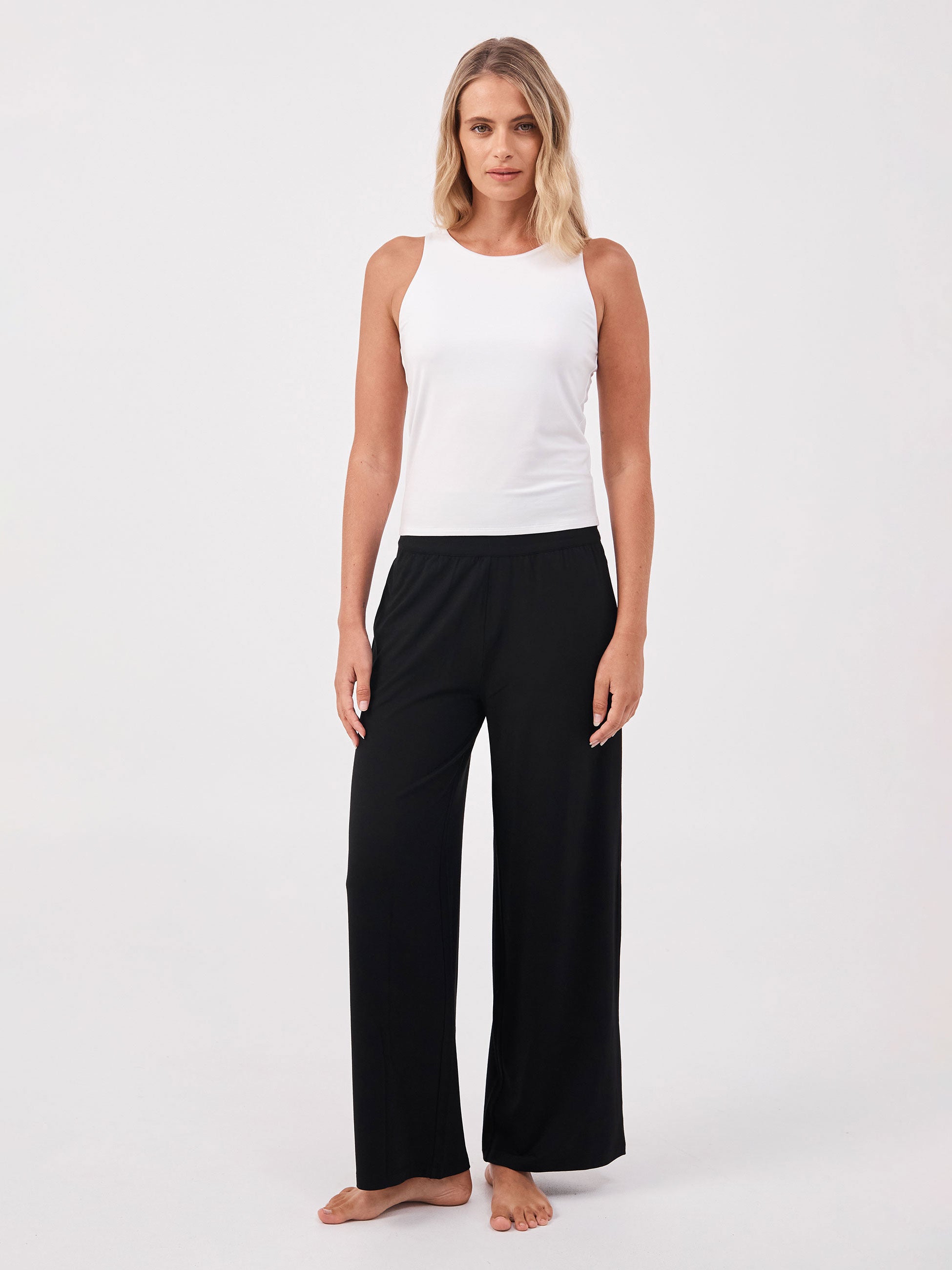 A timeless wardrobe essential, crafted in super soft modal for total comfort. Designed with an inbuilt shelf bra for a seamless finish. 100% skin kind and breathable. Perfect for in the studio and everyday wear. Matching Model bottoms & skirts are available.