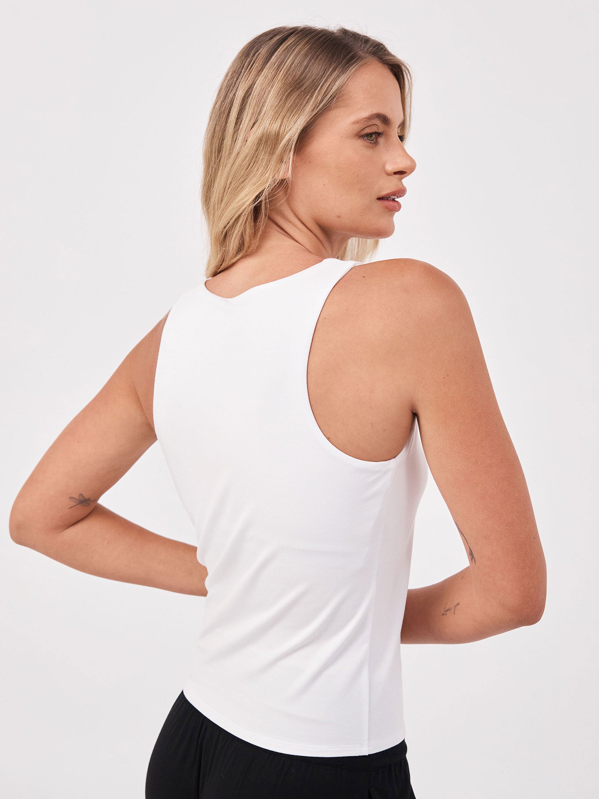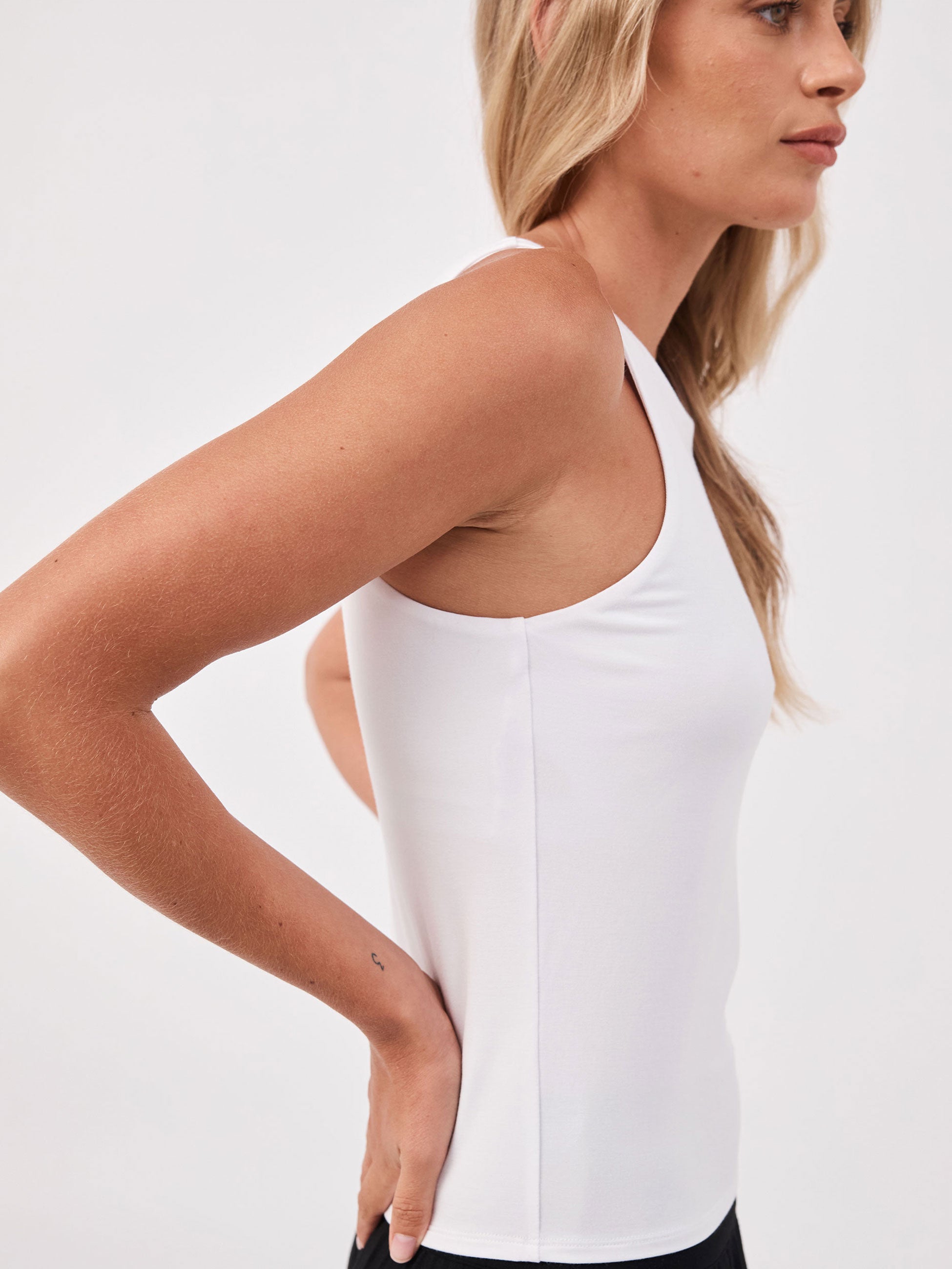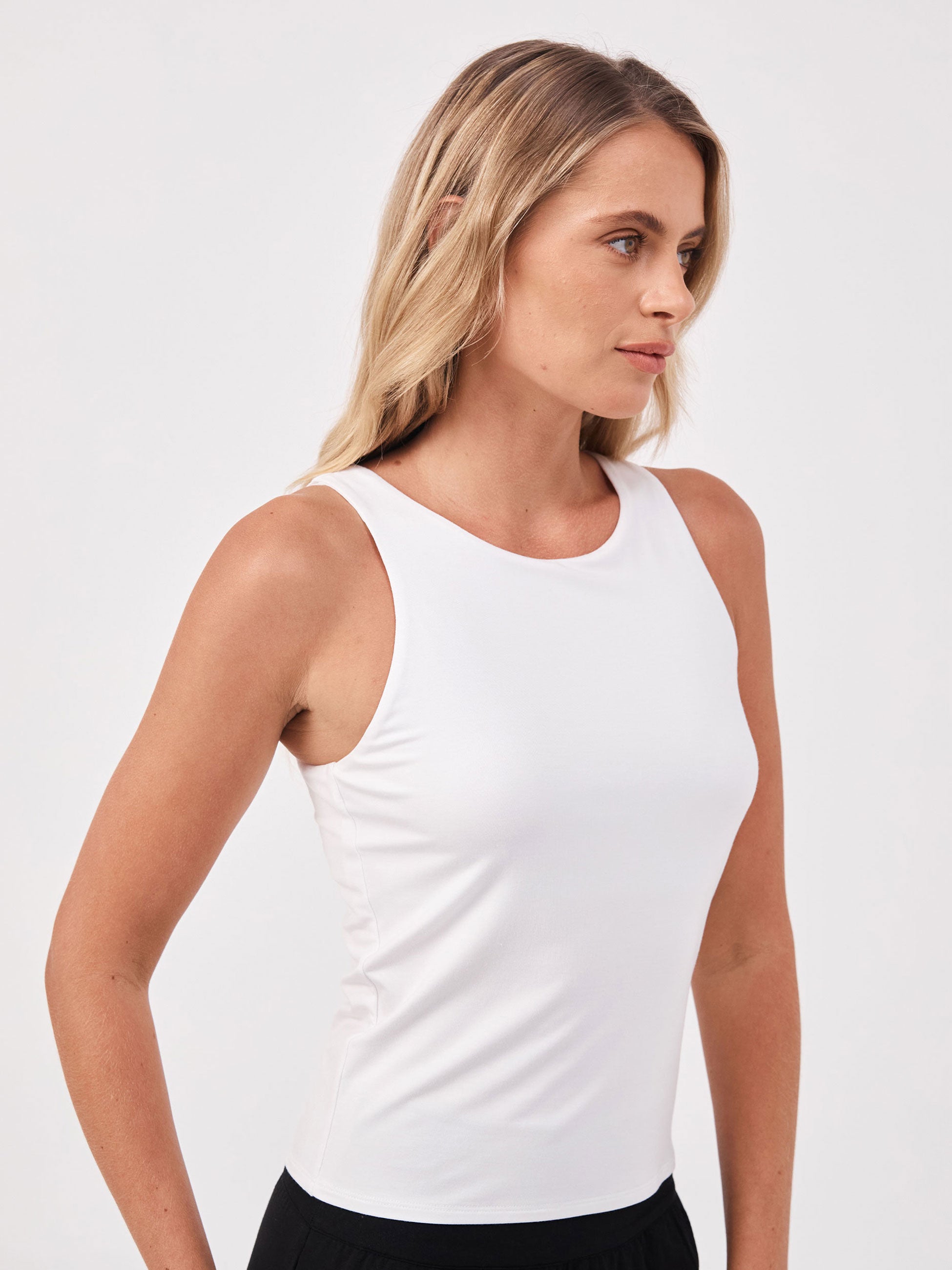 Your go-to shelf-bra tank: soft, flattering, and bra-free comfortable. Built to travel, easy to layer, and made for everyday wear.